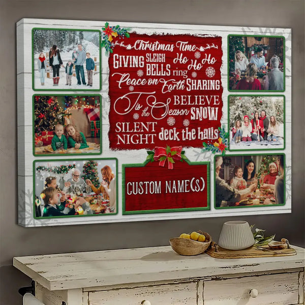 Family Christmas Personalized Canvas Prints - Custom Photo & Text - 5 Sizes - Mery Christmas Joy Family Photo Collage Canvas Decor - Dem Canvas