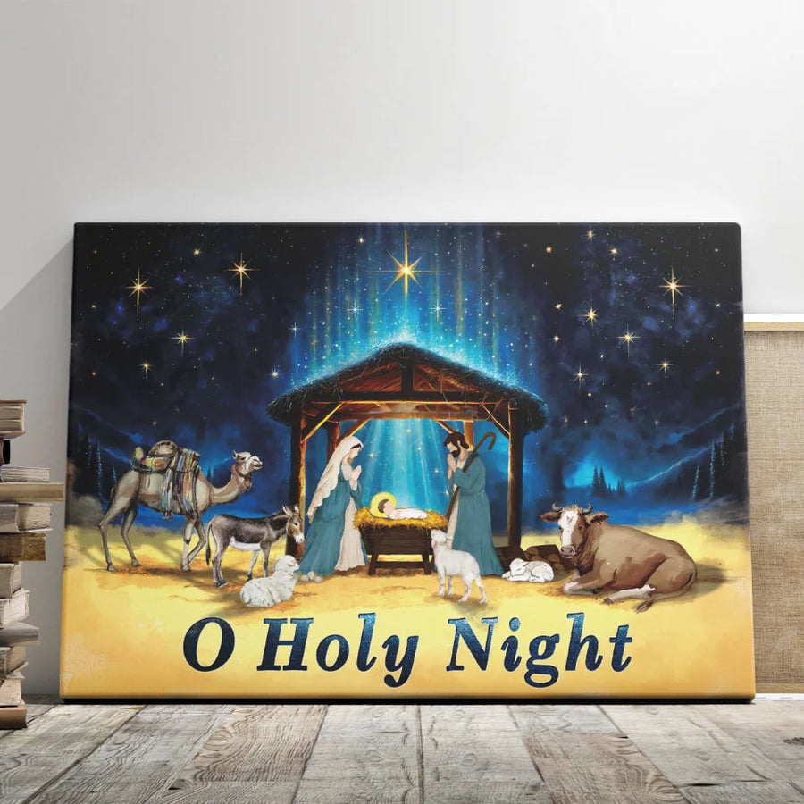 Christian Christmas Canvas Prints - 5 Sizes - O Holy Night Nativity Scene Watercolor Style - Dem Canvas