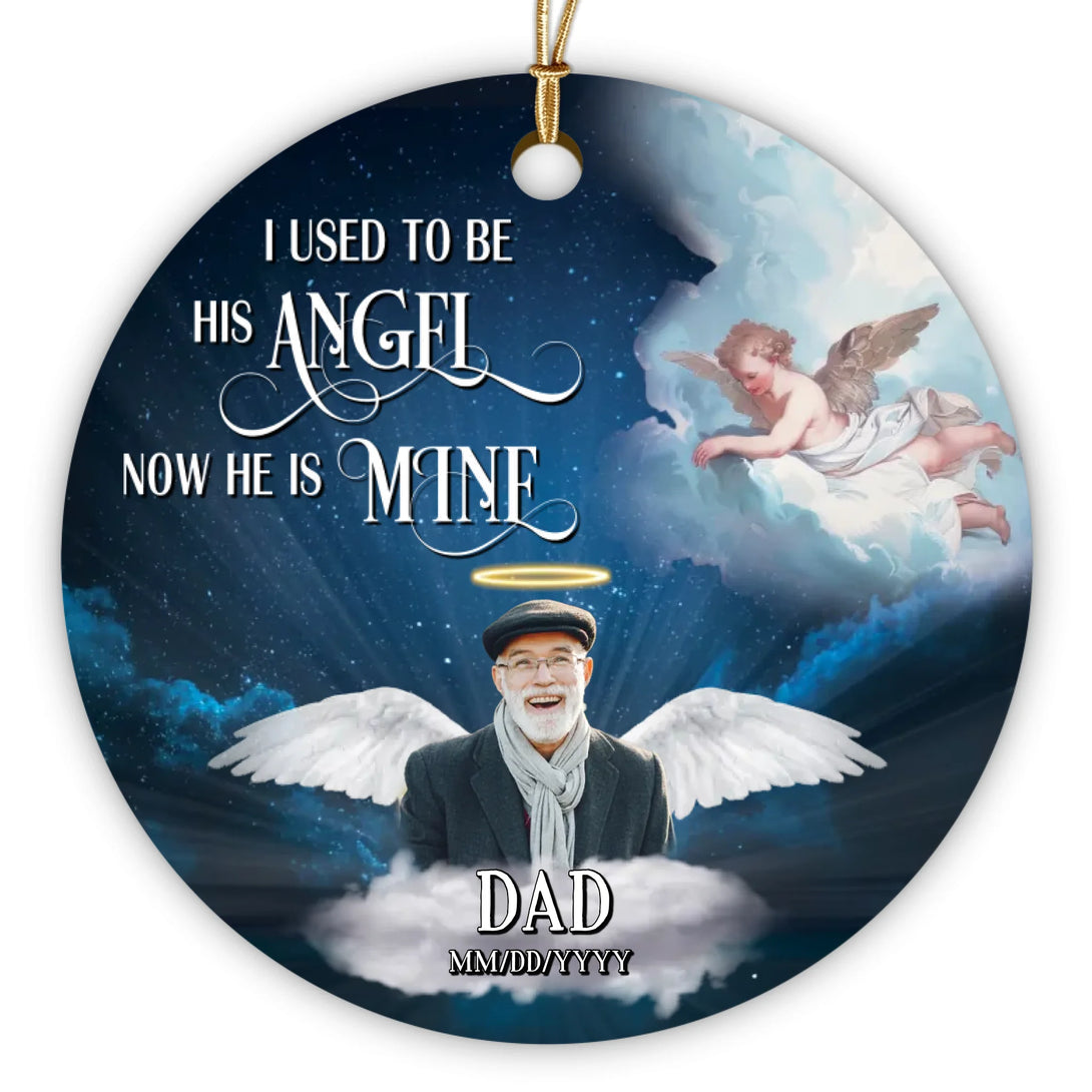 Dad Memorial Personalized Ornament - Custom Photo & Text - I Used To Be His Angel Now He Is Mine Memorial Ornament - Dem Canvas