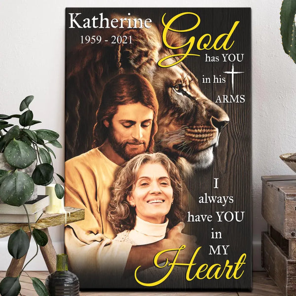 Memorial Canvas - Personalized Canvas Prints - In Memory Of Gifts Loss Of Mom, Upload Portrait Photo, The Lion Of Judah, God Has You In His Arms