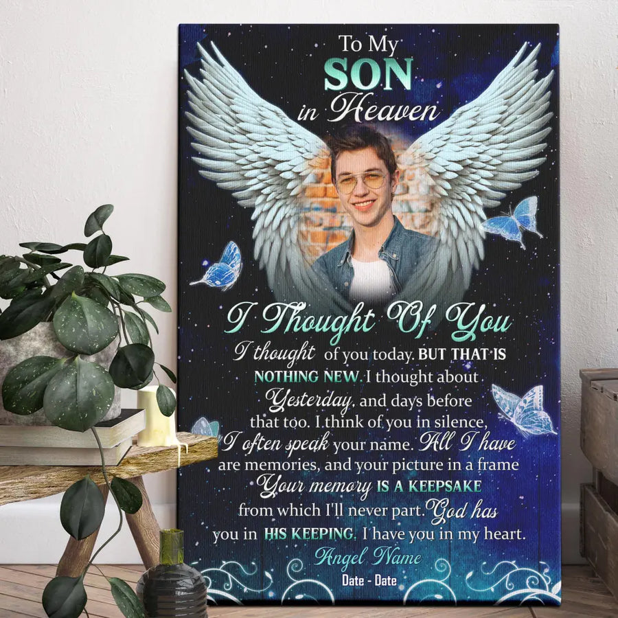 Personalized Canvas Prints, Custom Photo Sympathy Gifts, Remembrance Gifts, Bereavement Gifts, To My Son In Heaven, I Thought Of You Dem Canvas
