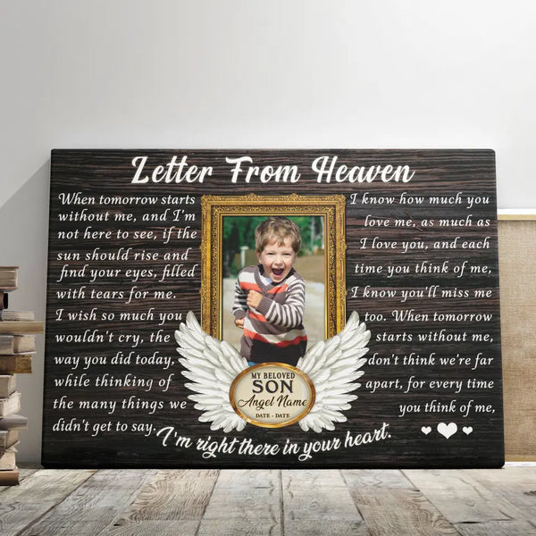 Personalized Canvas Prints, Custom Photo, Memorial Gifts, Sympathy Gifts, Loss Of Son, Angel Wings Letter From Heaven Dem Canvas