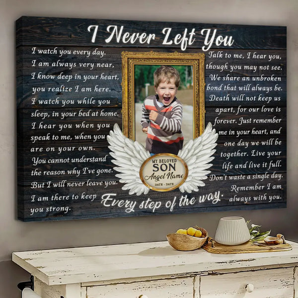 Personalized Canvas Prints, Custom Photo, Memorial Gifts, Sympathy Gifts, Remembrance Gifts, Loss Of Son, Angel Wings I Never Left You Dem Canvas