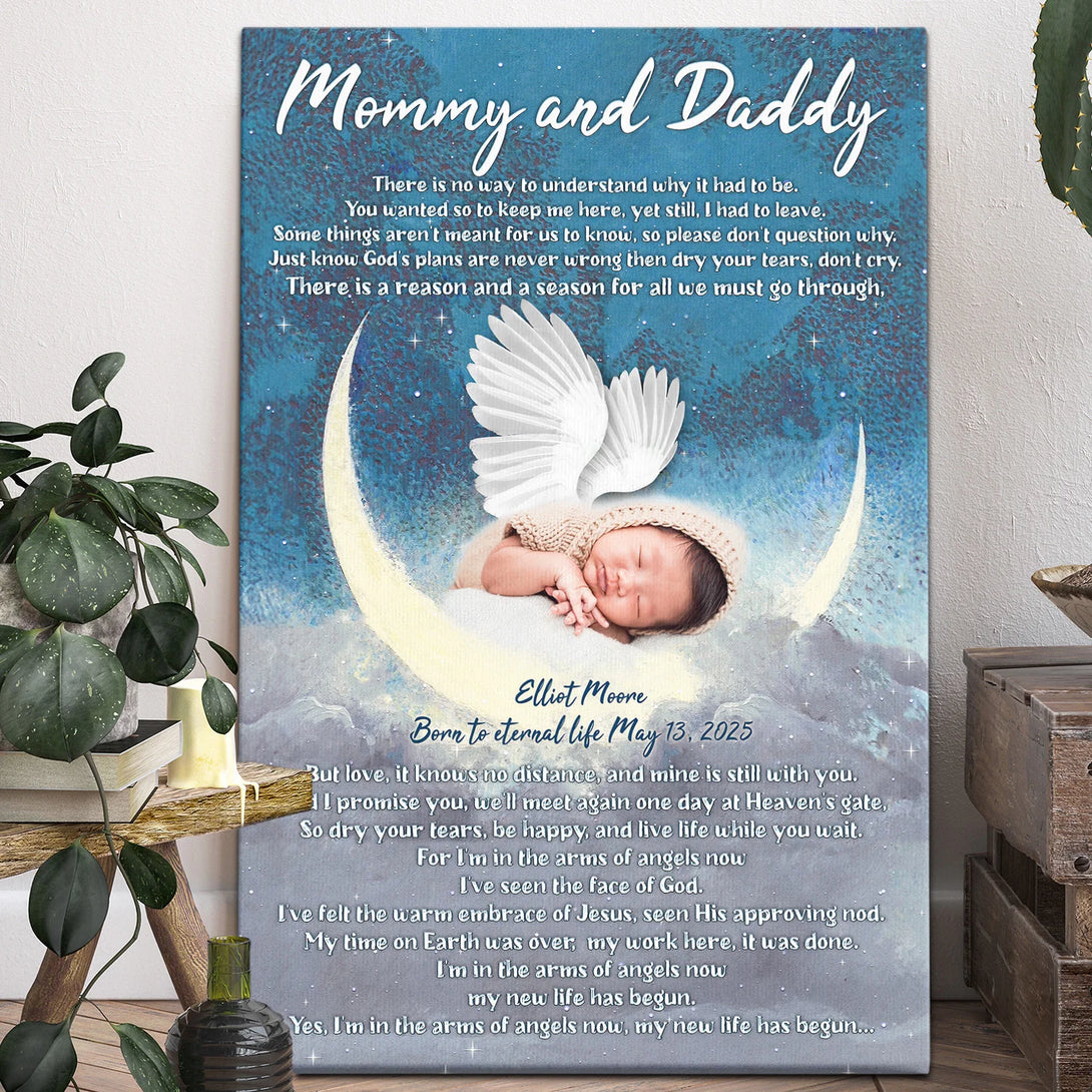 Baby Memorial Personalized Canvas Prints - Custom Photo & Text - 5 Sizes - I'm In The Arms Of Angels Now, My New Life Has Begun - Dem Canvas