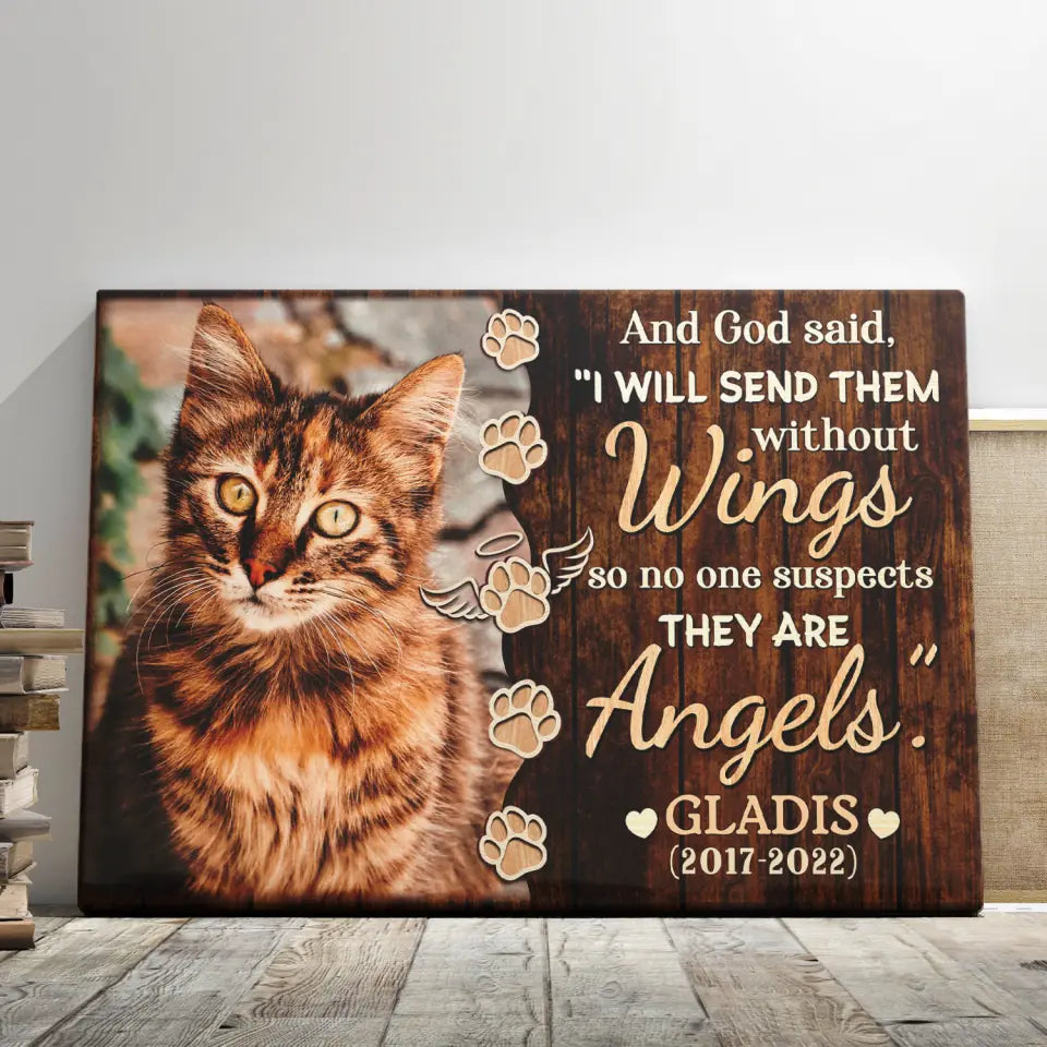 Cat Memorial Gift - Personalized Canvas Prints - I Will Send Them Without Wings, Pet Loss, Sympathy Gift For Cat