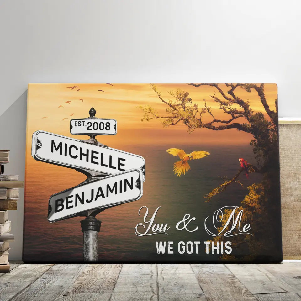Couple Personalized Canvas Prints - Custom Background & Text - 5 Sizes - Love Signpost Canvas, Couple's Anniversary Gift - Dem Canvas