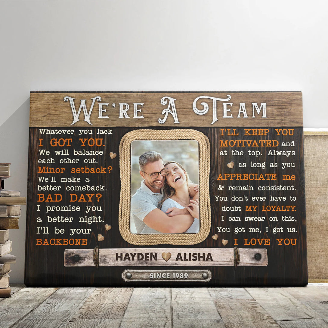 Couple Personalized Canvas Prints - Custom Photo & Text - 5 Sizes - Anniversary Gift, We Are A Team - Dem Canvas