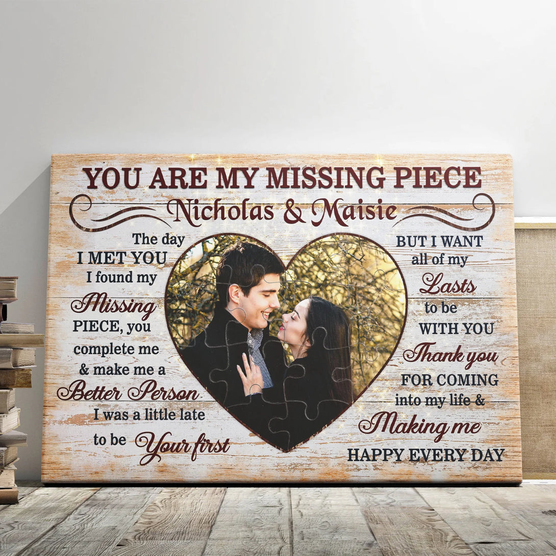 Couple Personalized Canvas Prints - Custom Photo & Text - 5 Sizes - Couple Gifts, Anniversary Gifts, You Are My Missing Piece - Dem Canvas