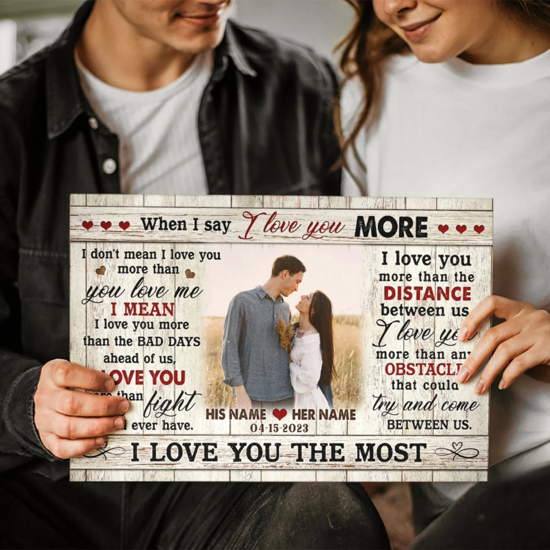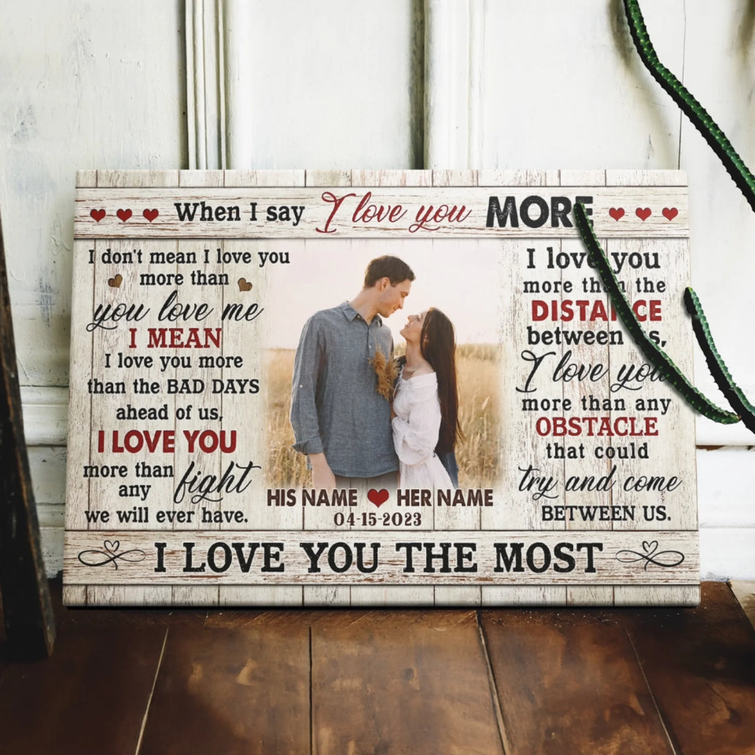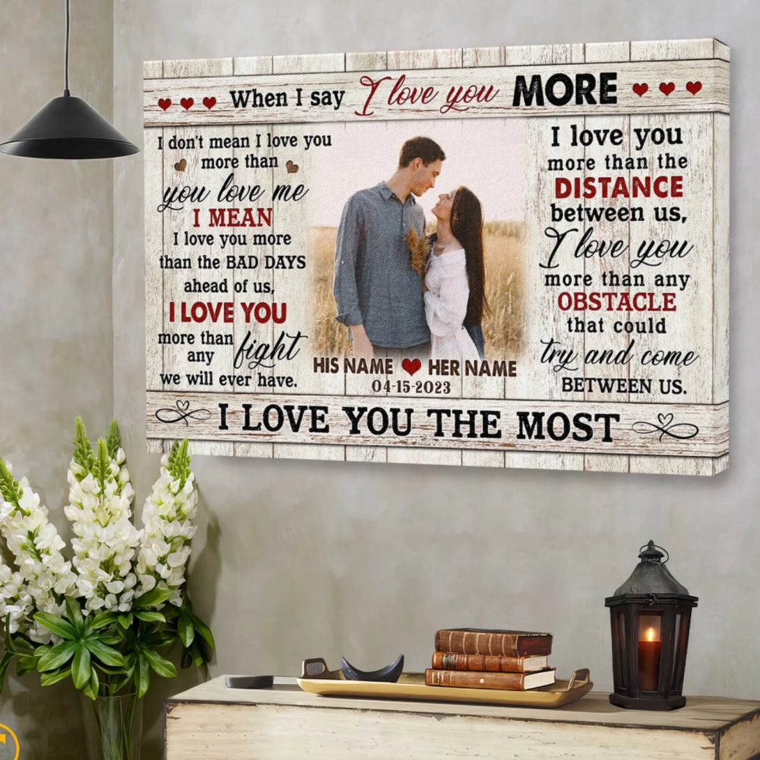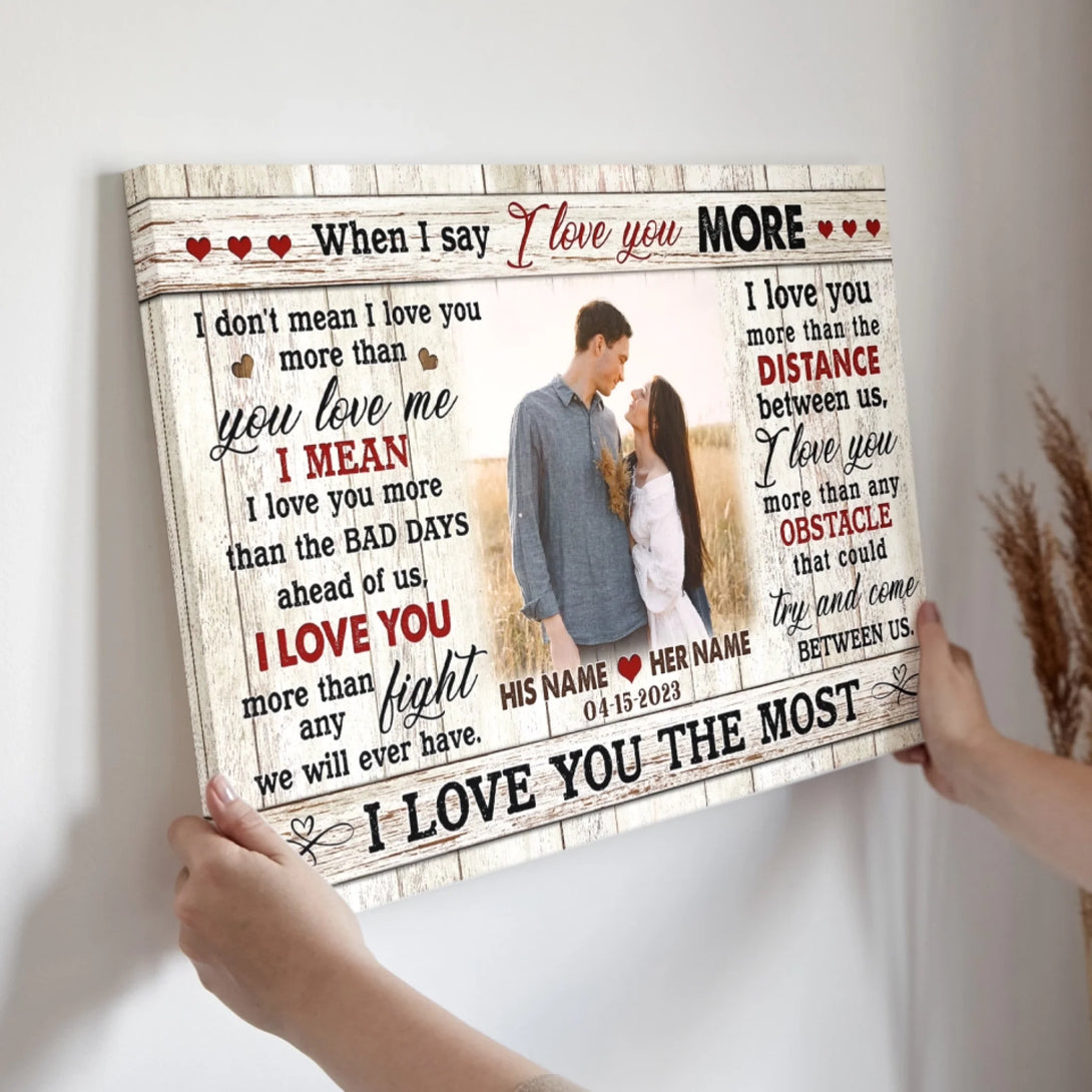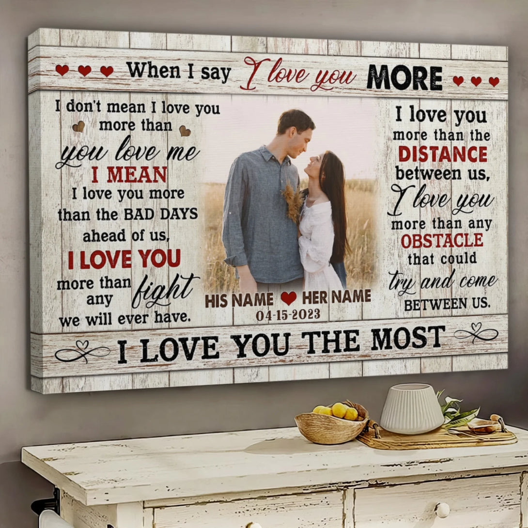 Couple Personalized Canvas Prints - Custom Photo & Text - 5 Sizes - Custom Romantic Gifts For Couples, I Love You More - Dem Canvas