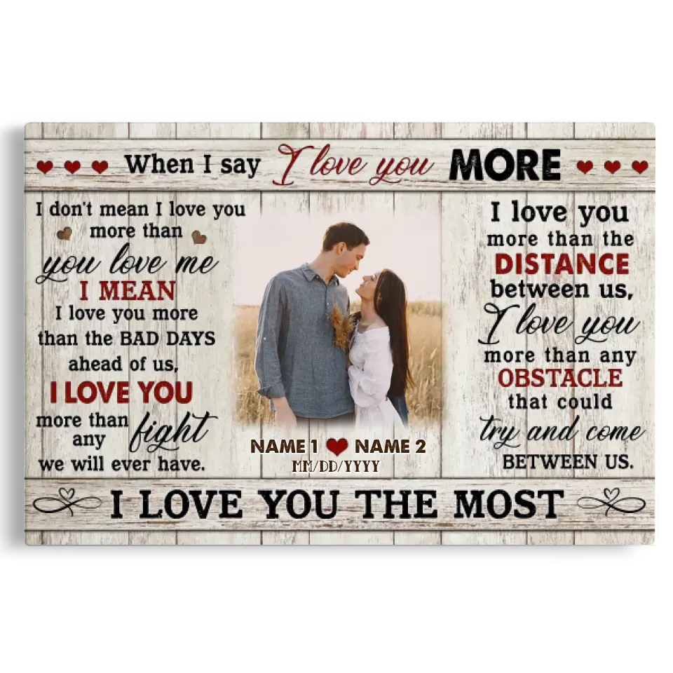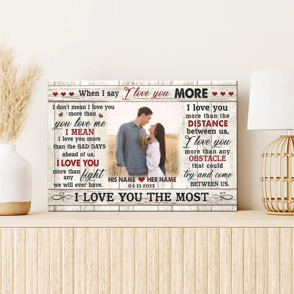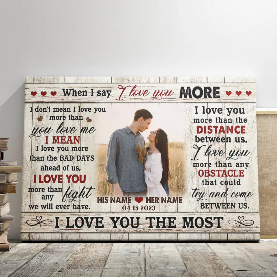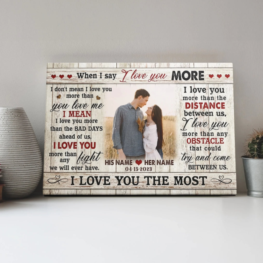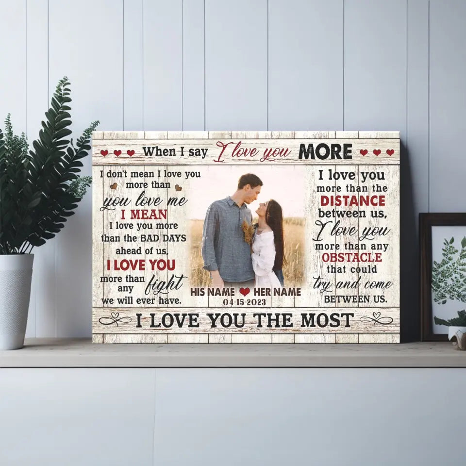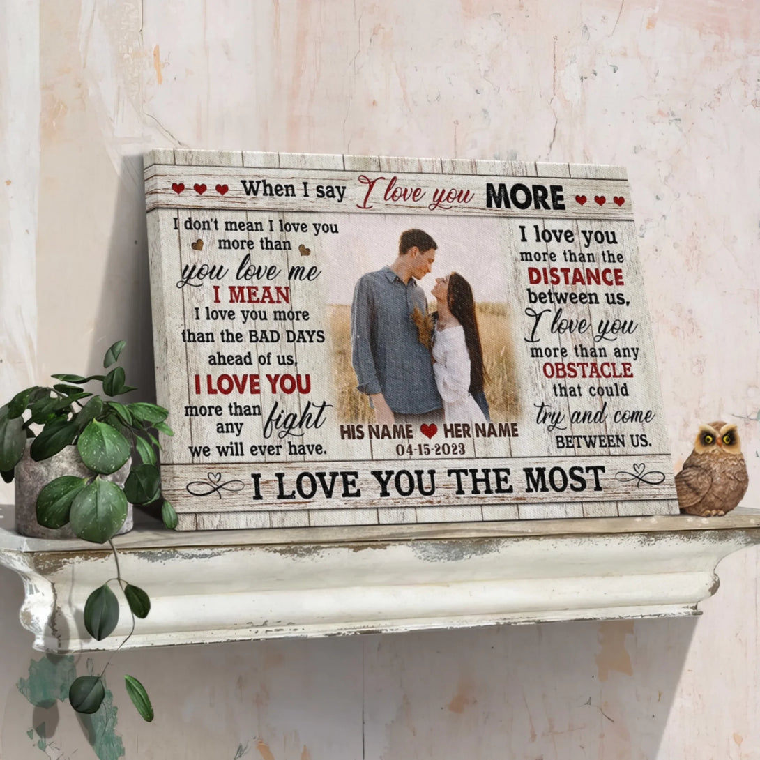 Couple Personalized Canvas Prints - Custom Photo & Text - 5 Sizes - Custom Romantic Gifts For Couples, I Love You More - Dem Canvas