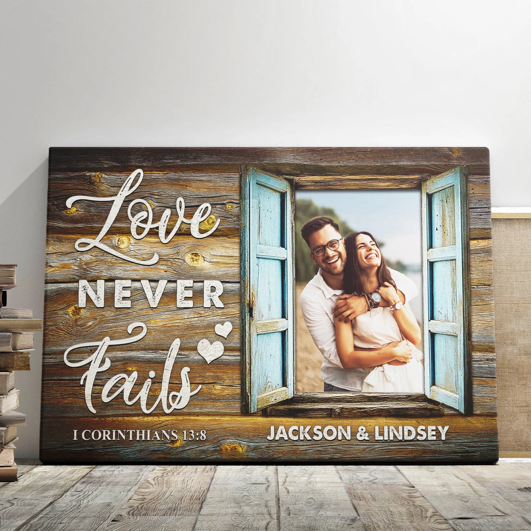 Couple Personalized Canvas Prints - Custom Photo & Text - 5 Sizes - Gift For Couple, Anniversary Gift, Love Never Fails - Dem Canvas