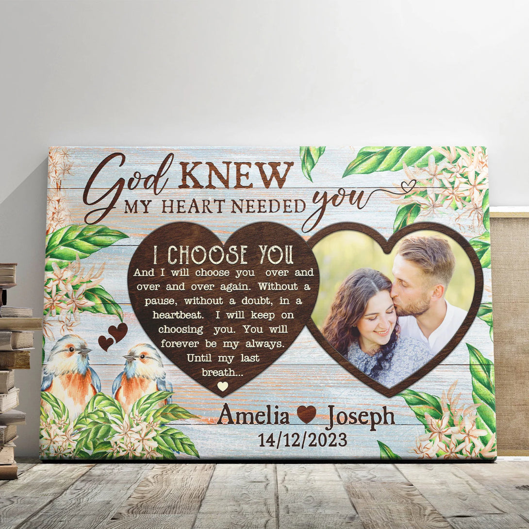 Couple Personalized Canvas Prints - Custom Photo & Text - 5 Sizes - Love Gifts, Couple Birds, God Knew My Heart Needed You, I Choose You - Dem Canvas