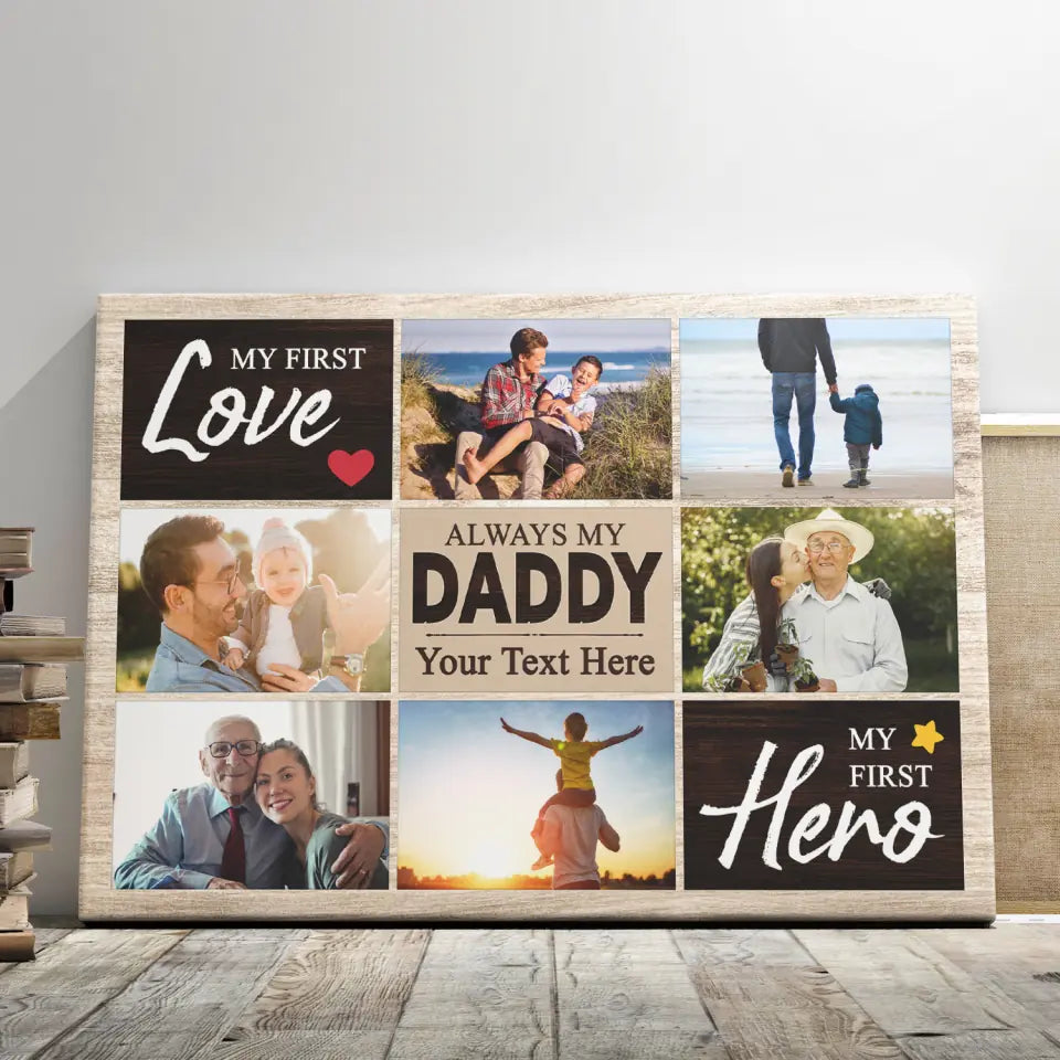 Custom Father's Day Gifts - Personalized Canvas Prints - My First Love, My First Hero, Custom Photo Collage