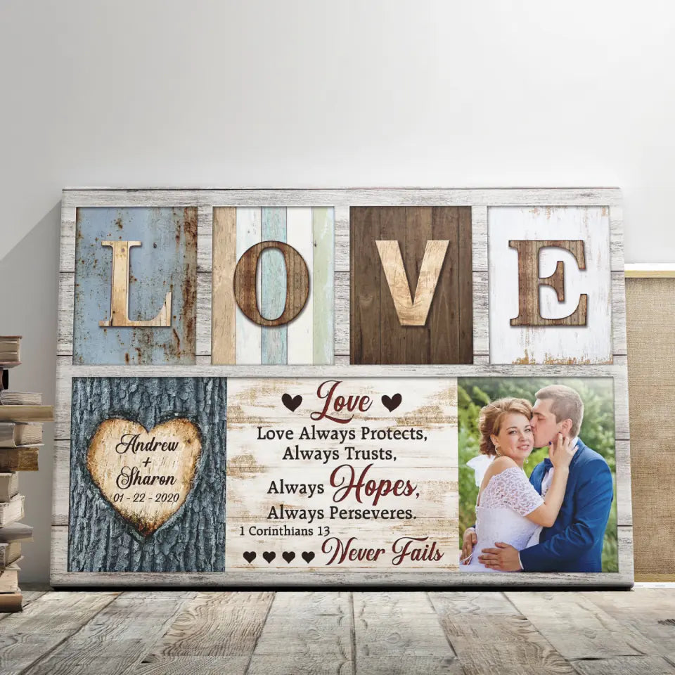 Customized Couple Gifts - Personalized Canvas Prints - Custom Photo, 1 Corinthians 13, Love Hope Never Fails