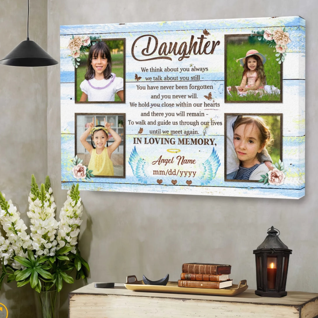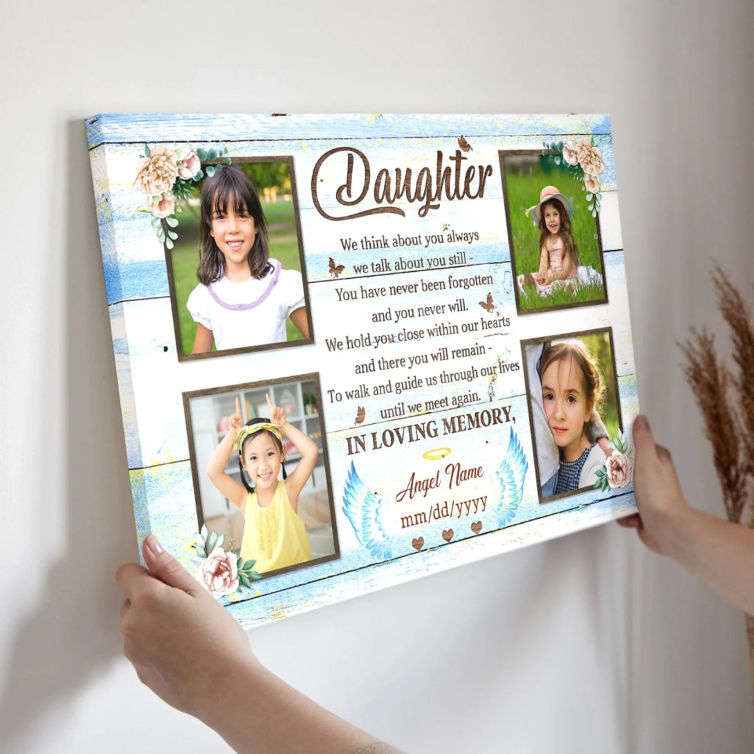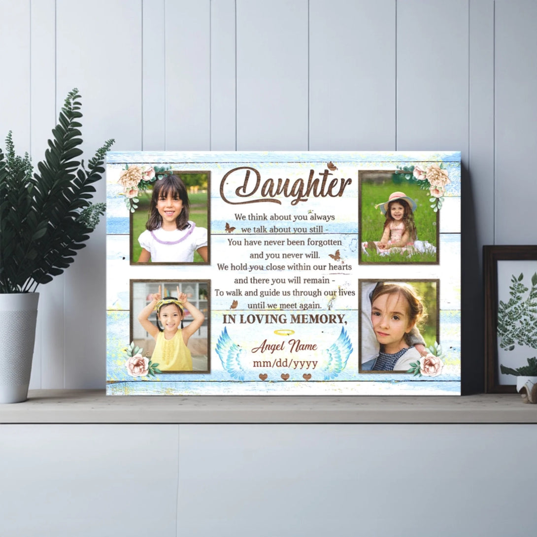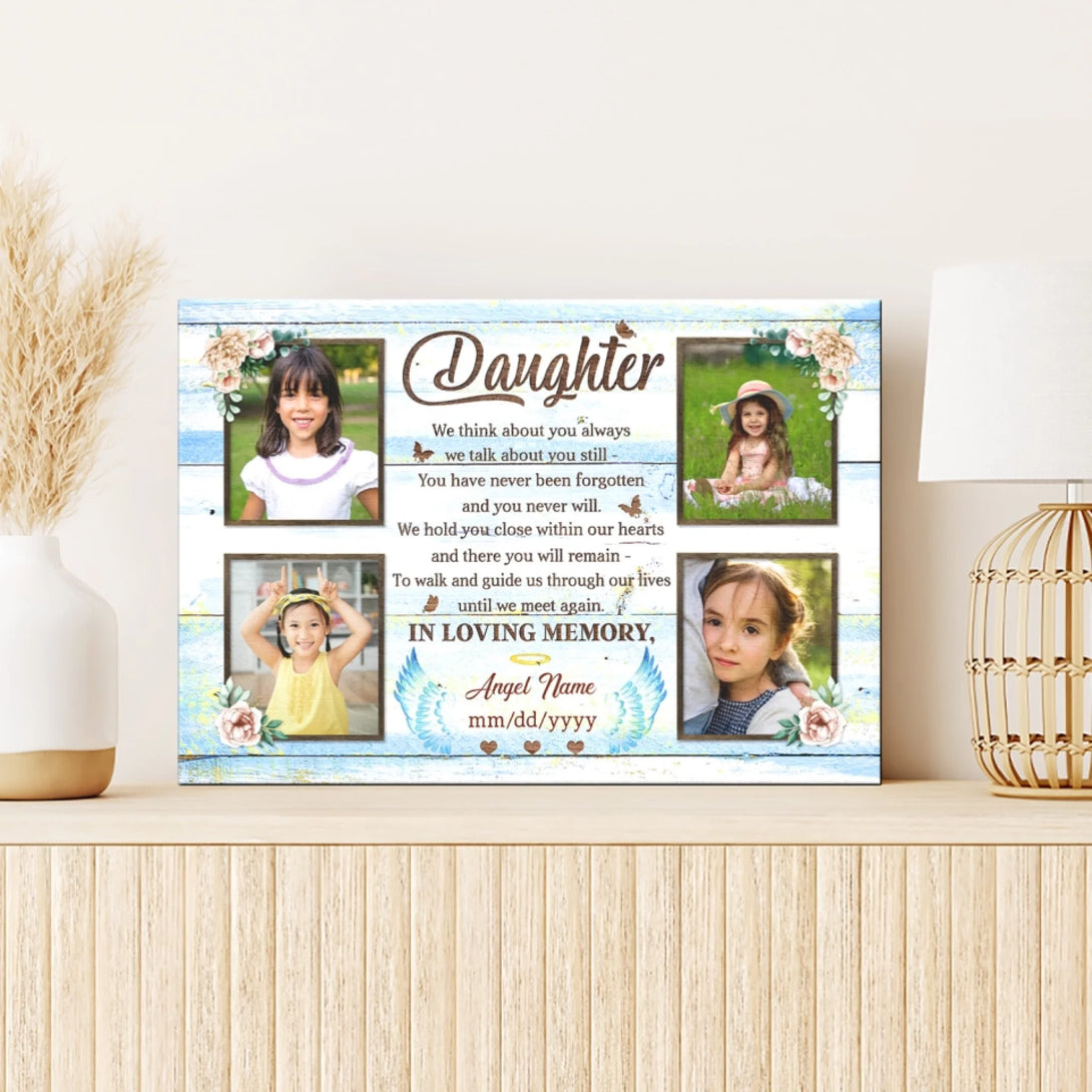 Daughter Memorial Personalized Canvas Prints - Custom Photo & Text - 5 Sizes - In Loving Memory of Our Daughter, Forever in Our Hearts - Dem Canvas