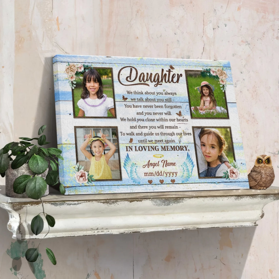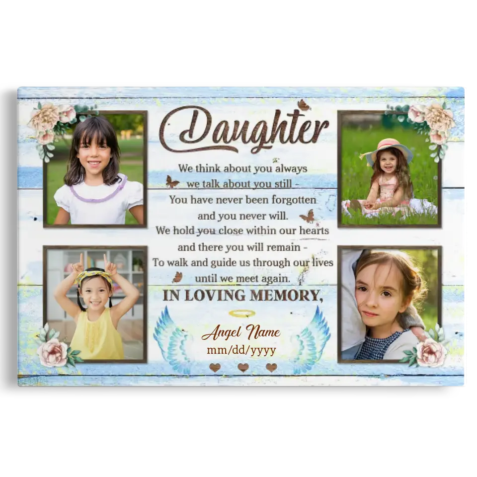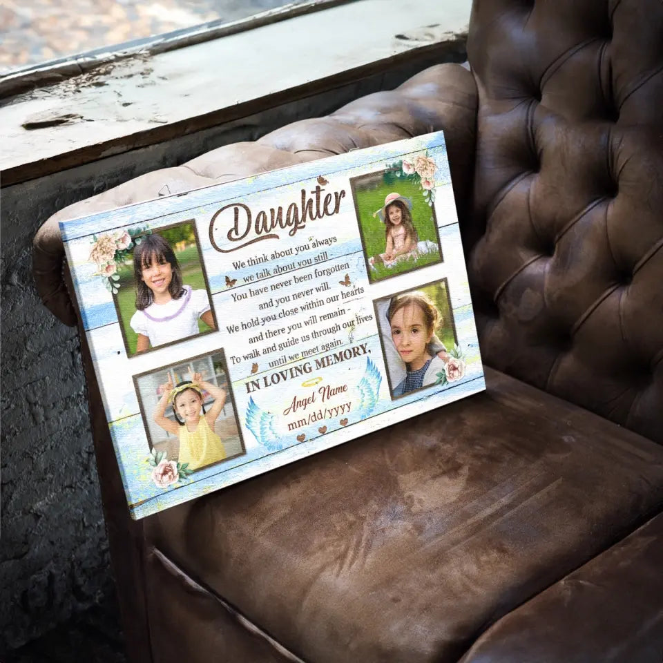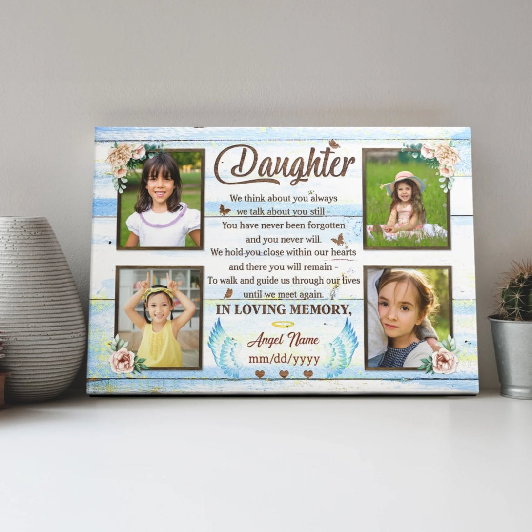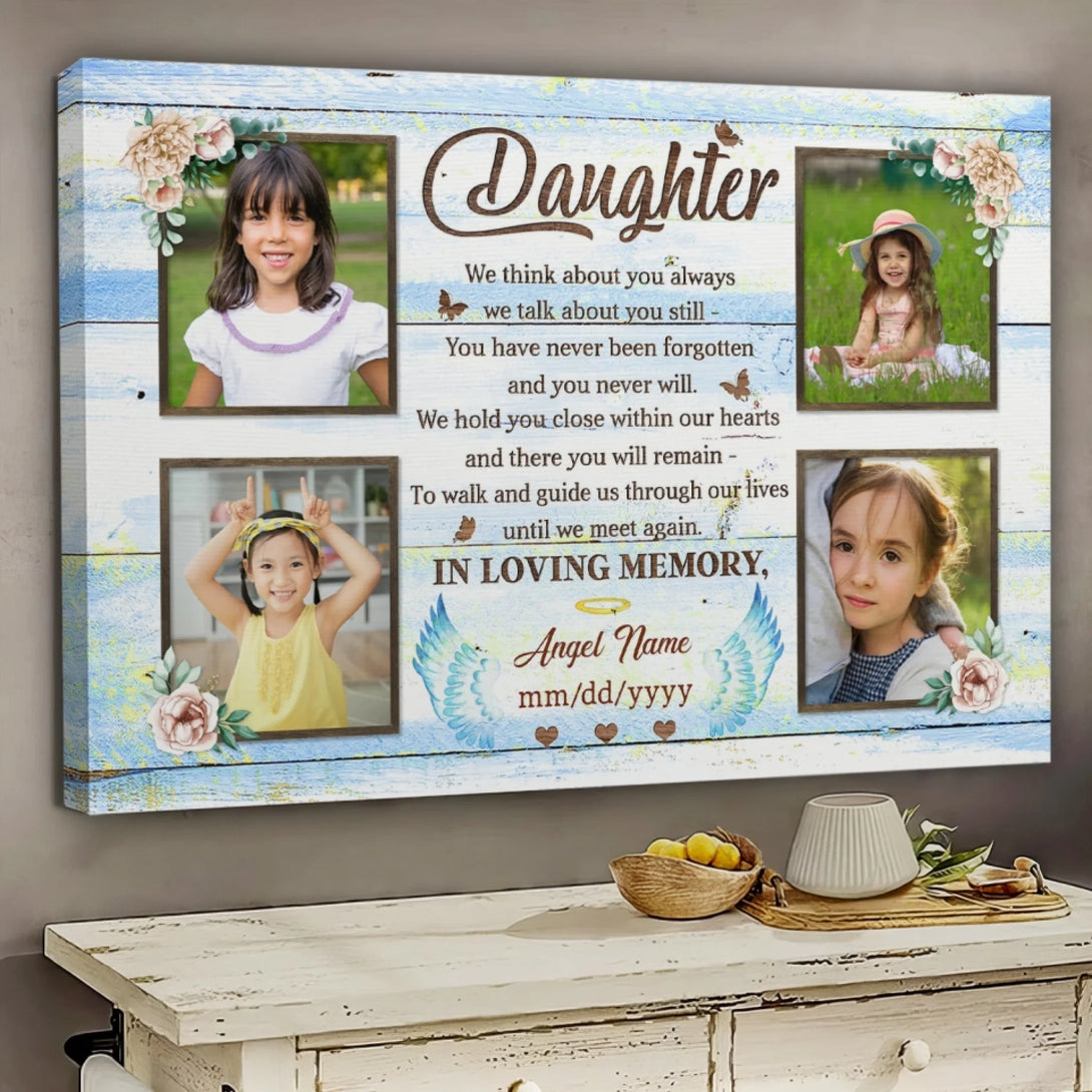 Daughter Memorial Personalized Canvas Prints - Custom Photo & Text - 5 Sizes - In Loving Memory of Our Daughter, Forever in Our Hearts - Dem Canvas