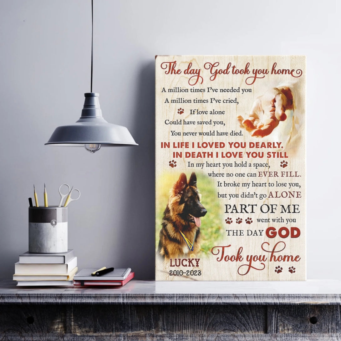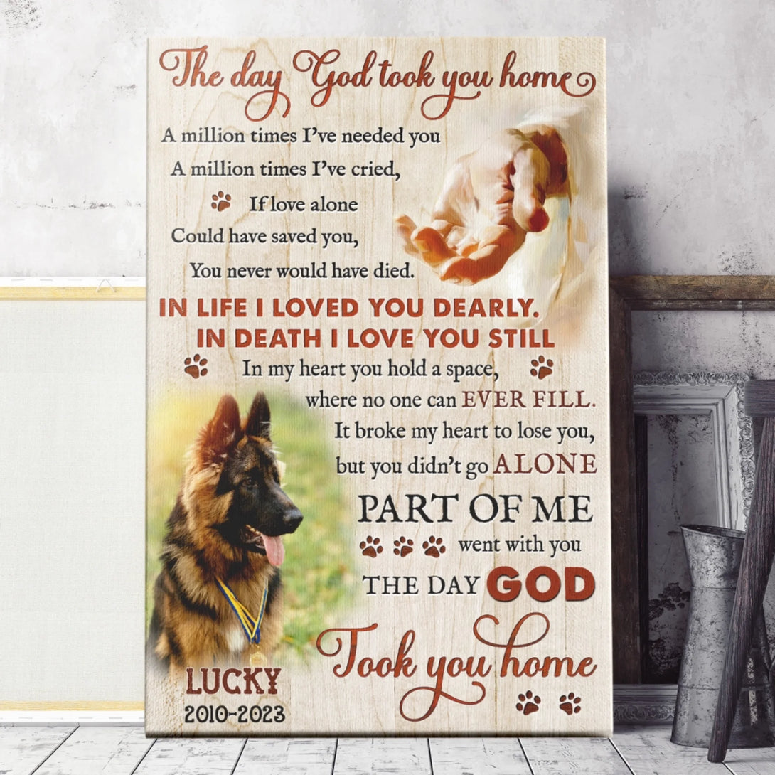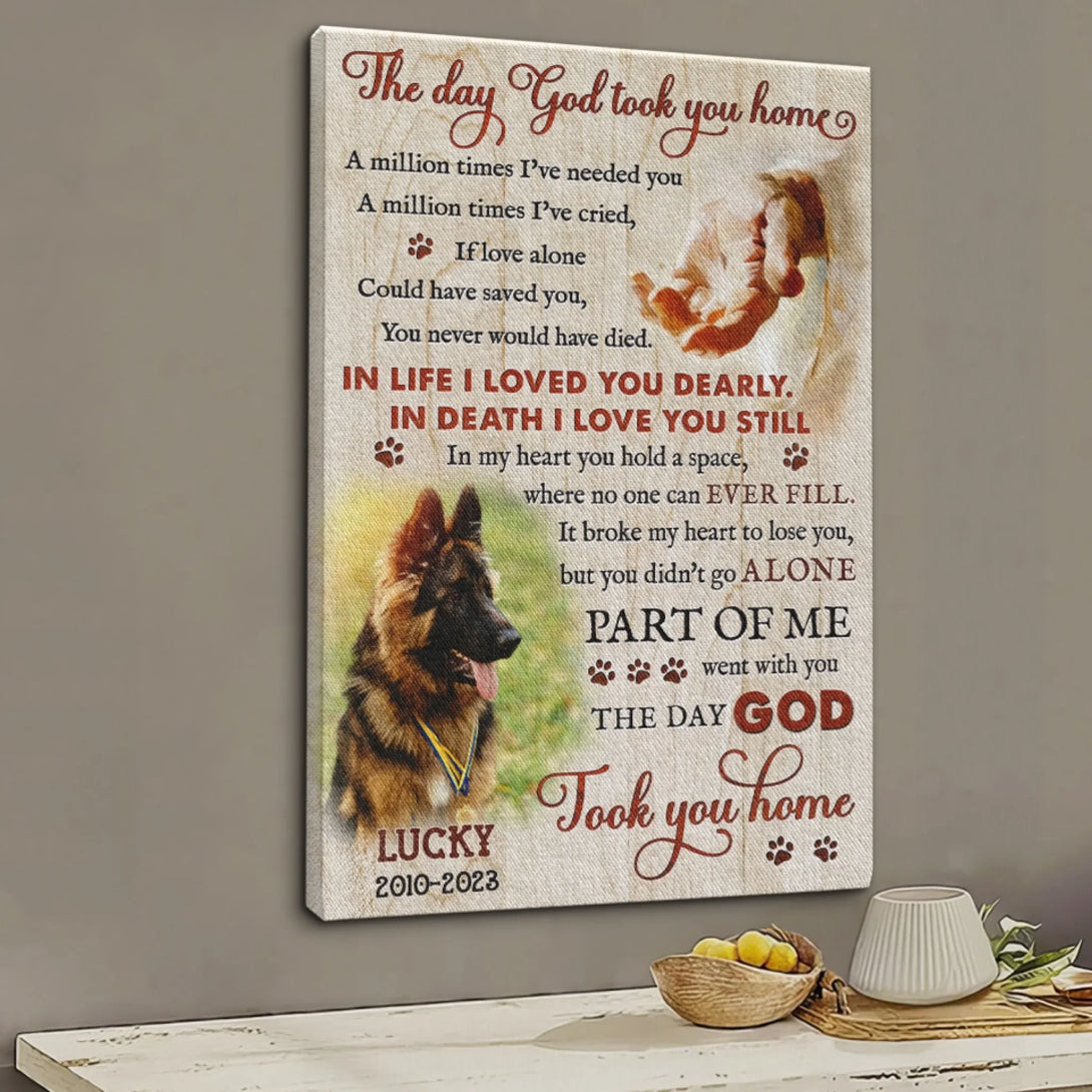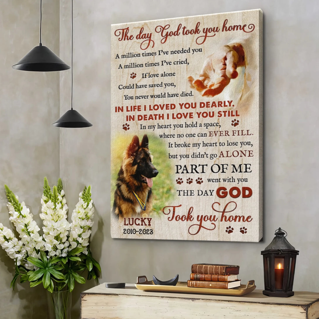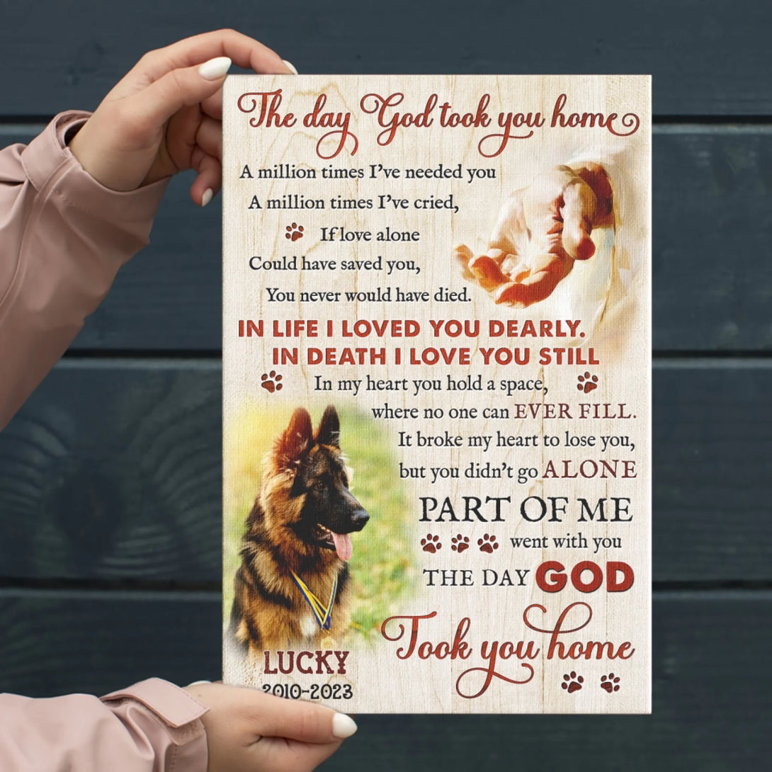 Dog Memorial Personalized Canvas Prints - Custom Photo & Text - 5 Sizes - Custom Sayings For Loss Of Dog, The Day God Took You Home - Dem Canvas