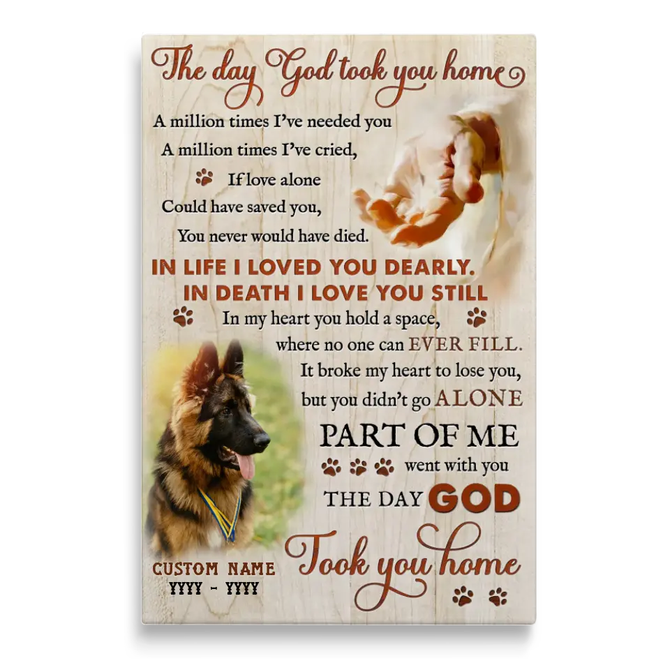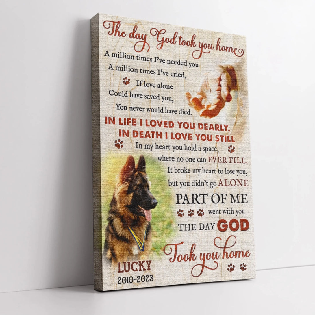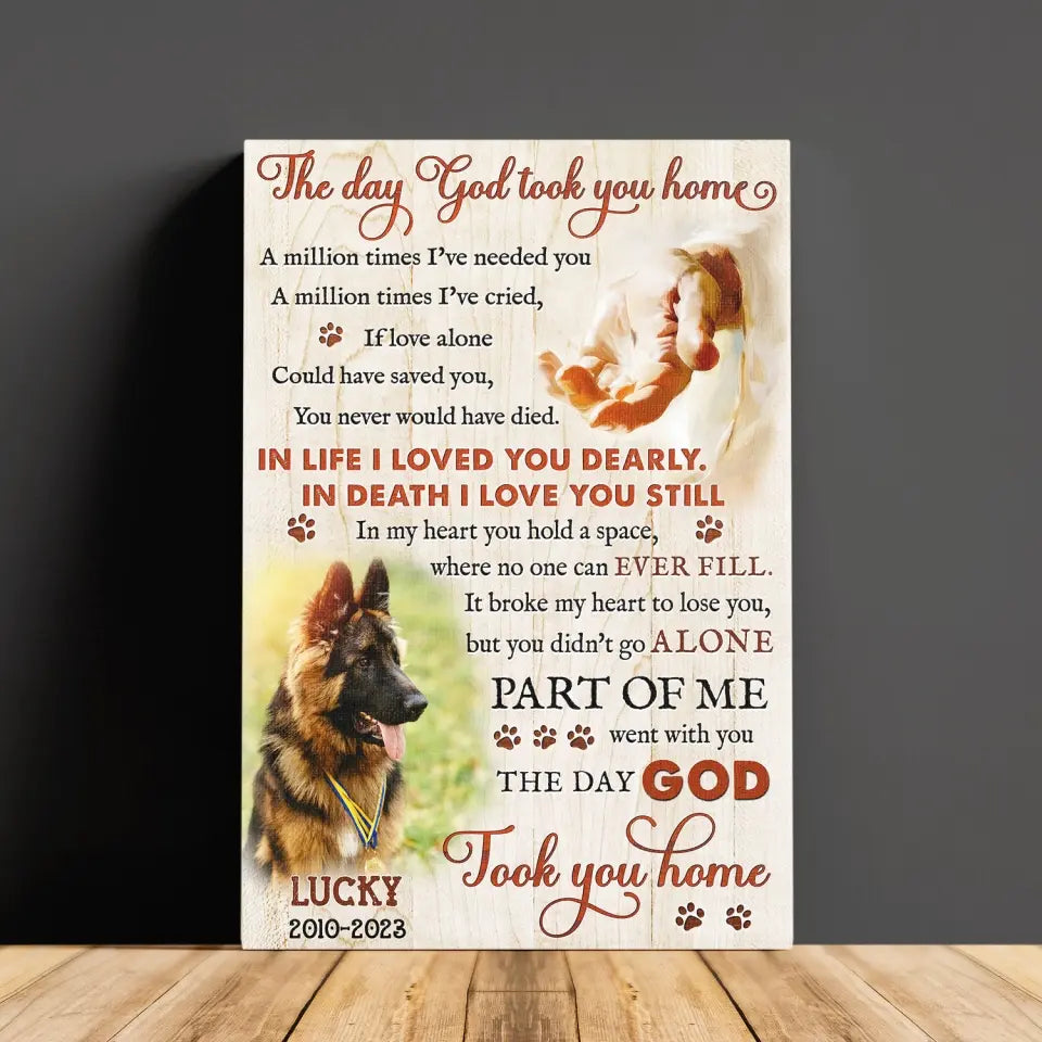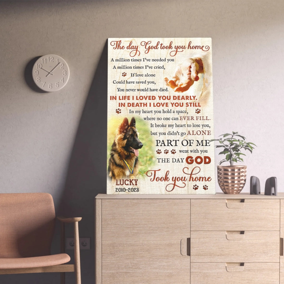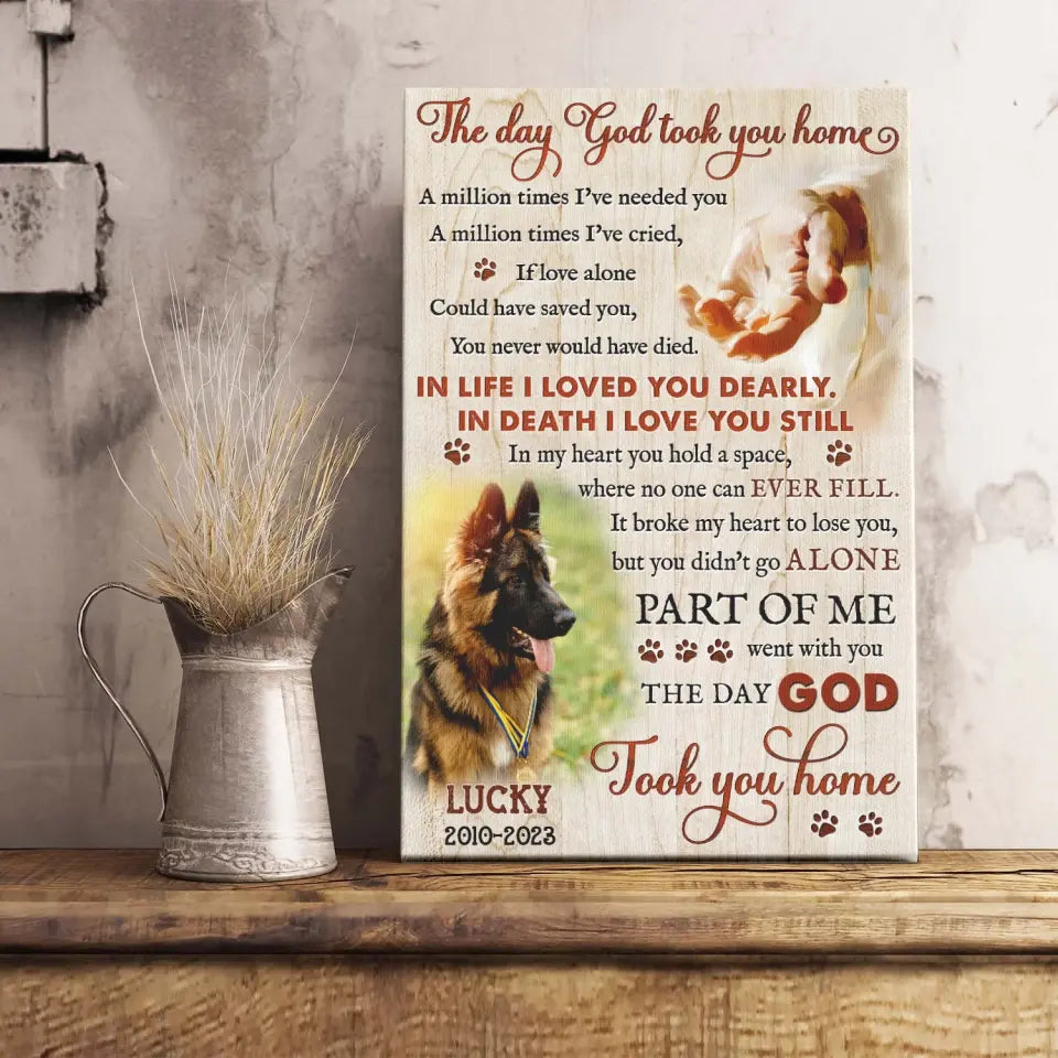 Dog Memorial Personalized Canvas Prints - Custom Photo & Text - 5 Sizes - Custom Sayings For Loss Of Dog, The Day God Took You Home - Dem Canvas