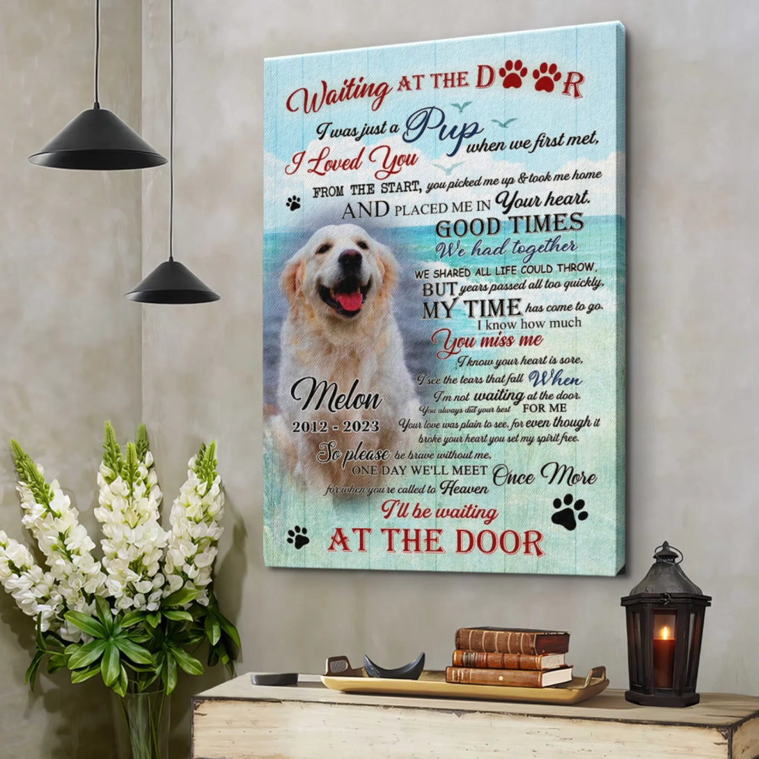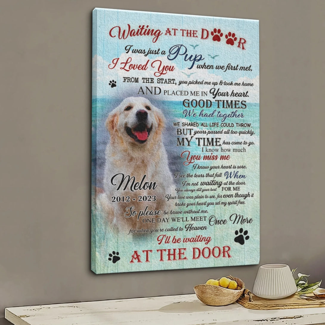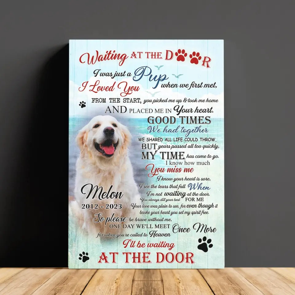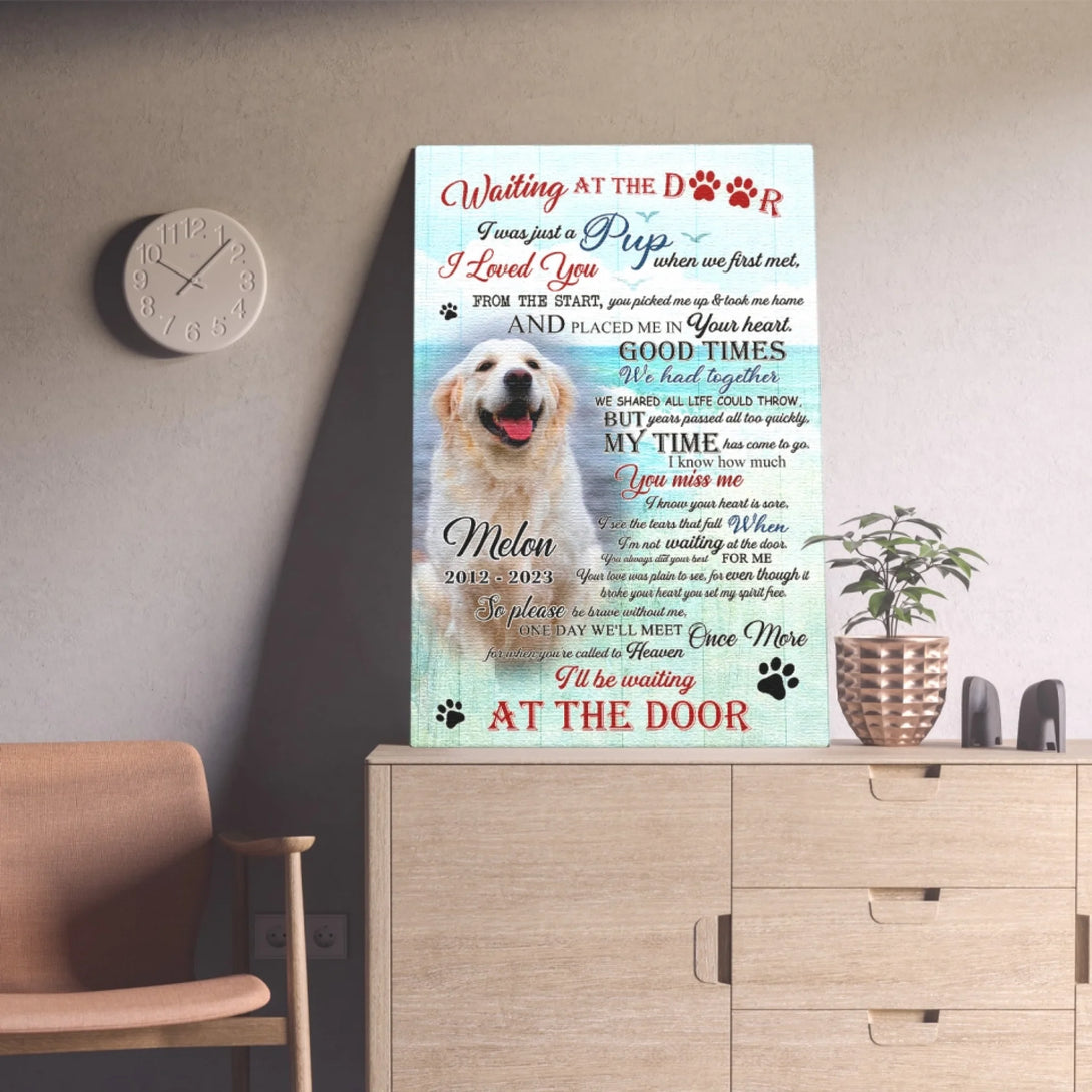 Dog Memorial Personalized Canvas Prints - Custom Photo & Text - 5 Sizes - Custom Sayings For Loss Of Dog, Waiting At The Door - Dem Canvas