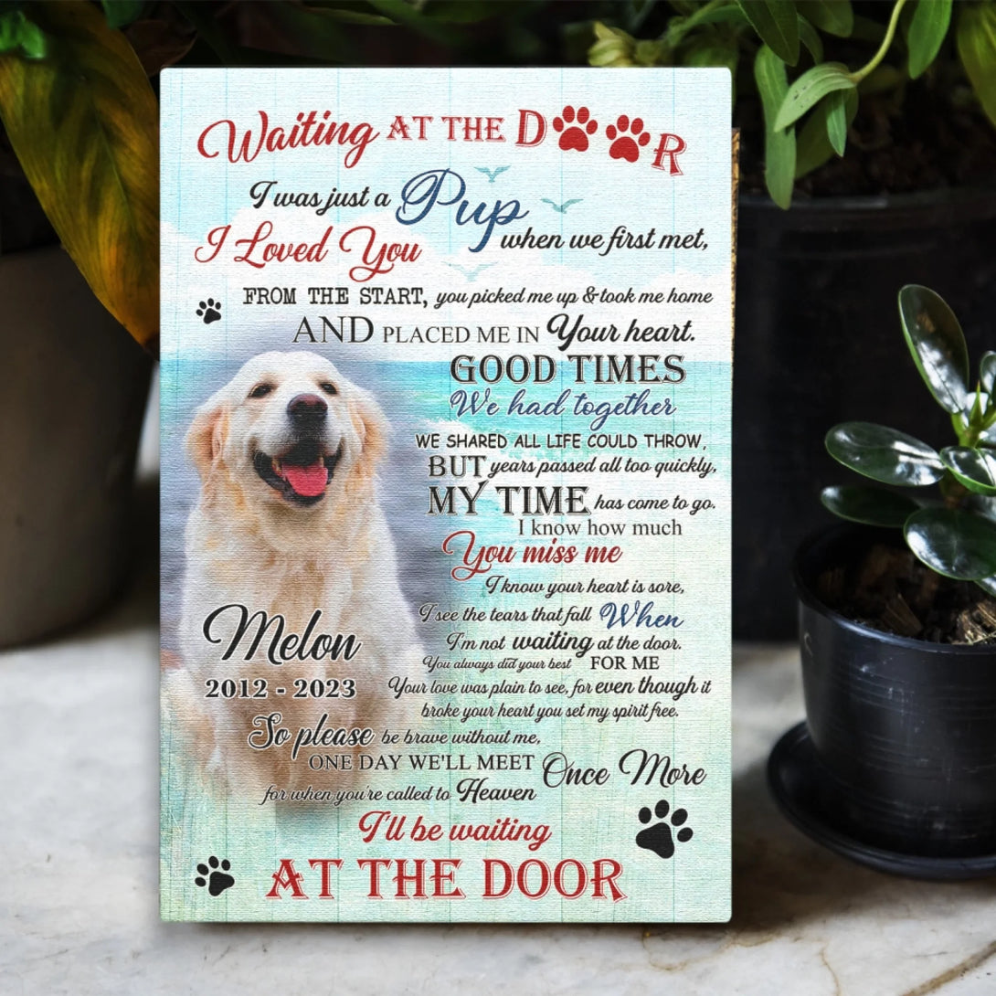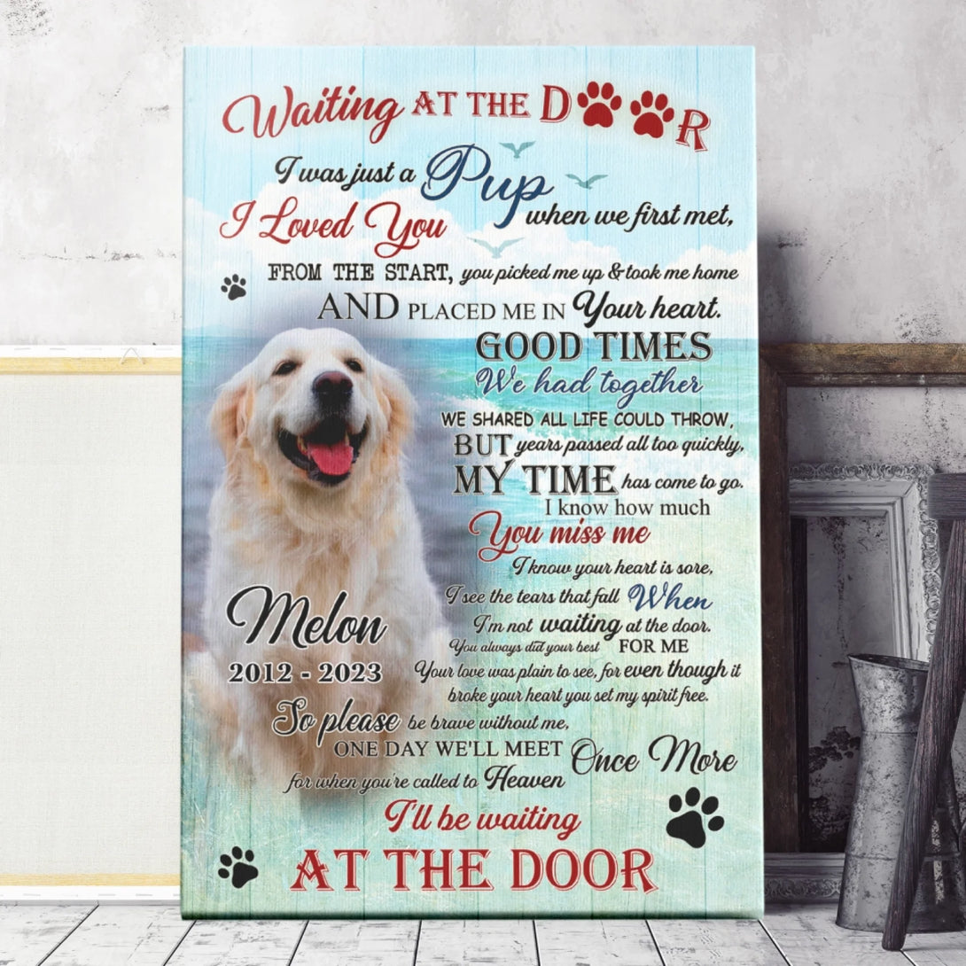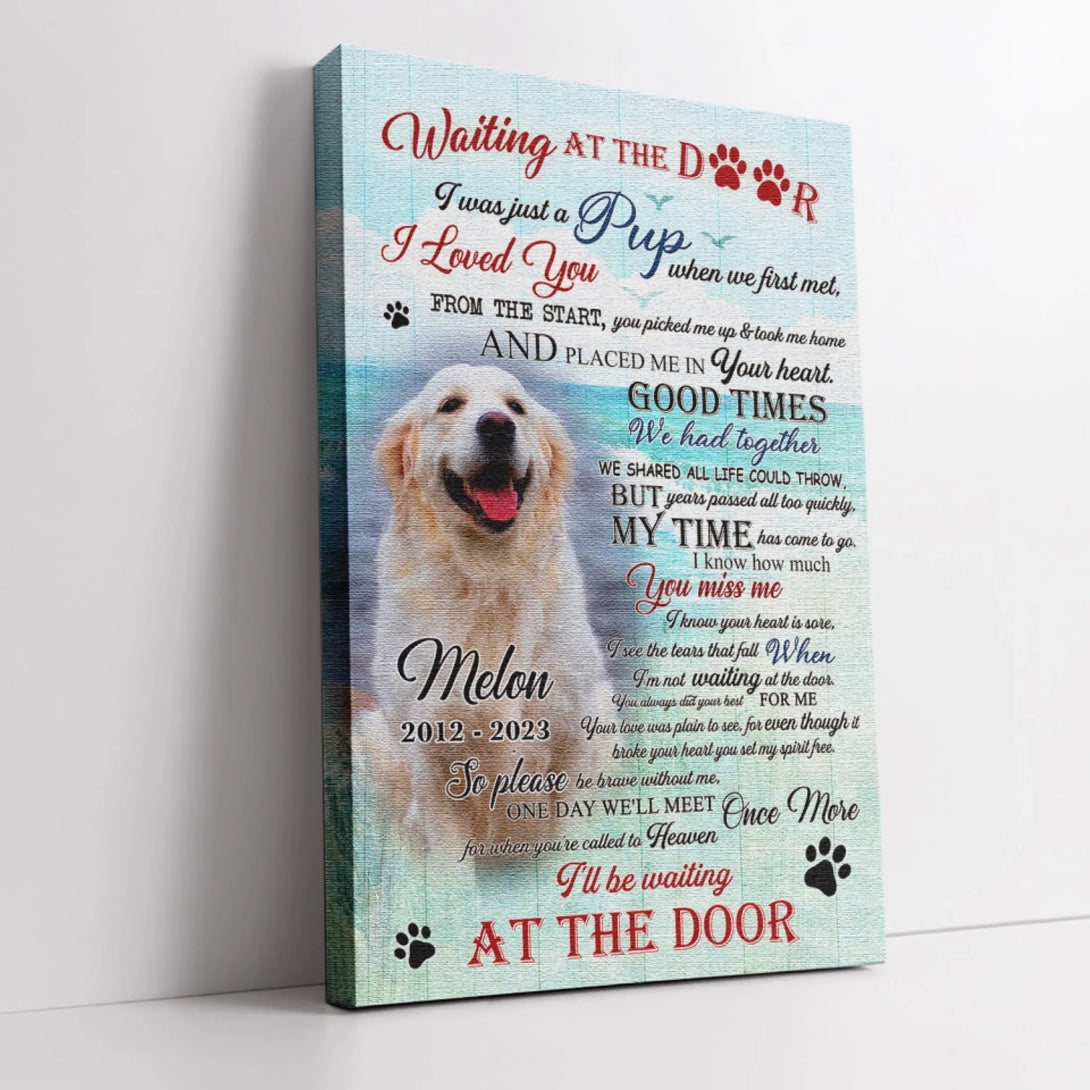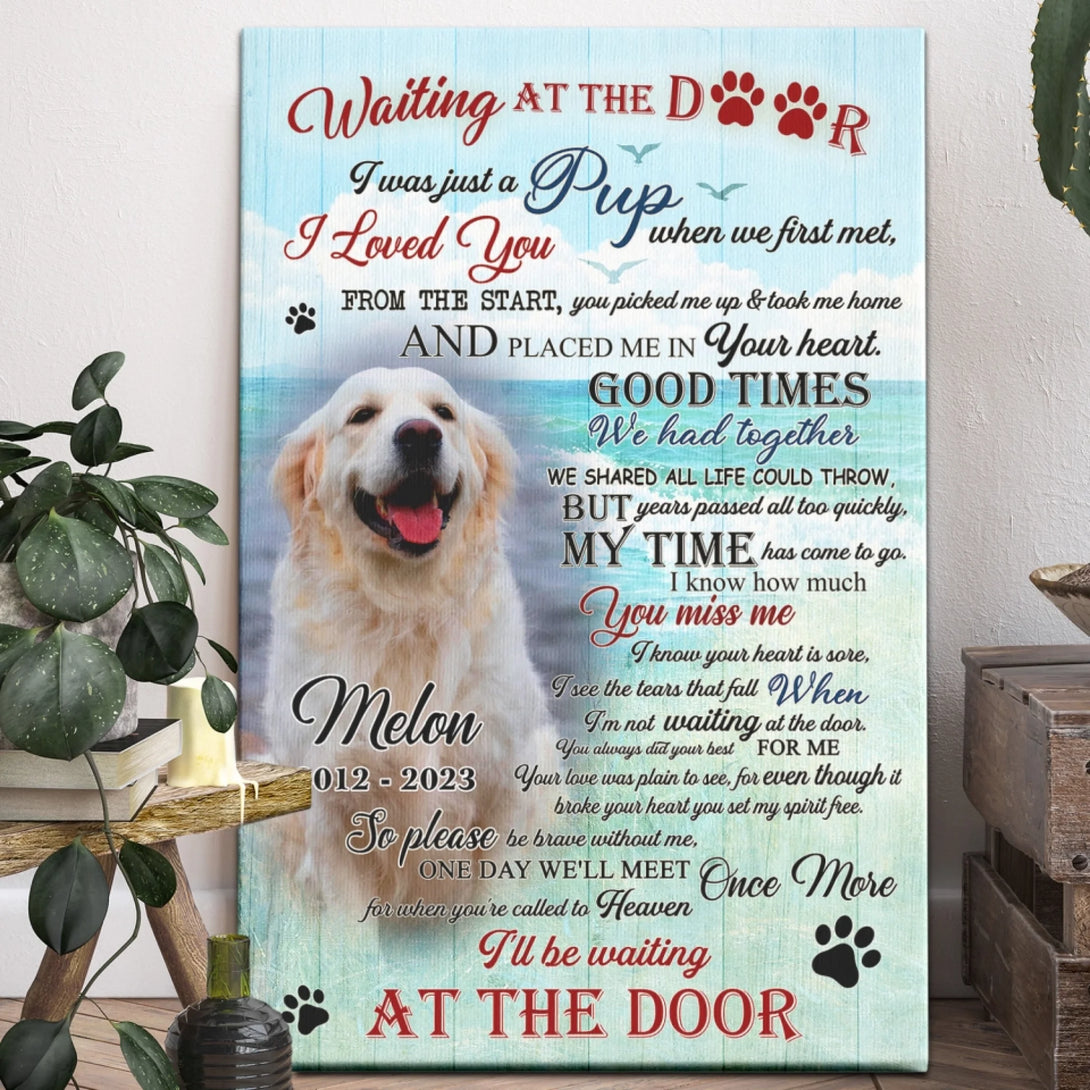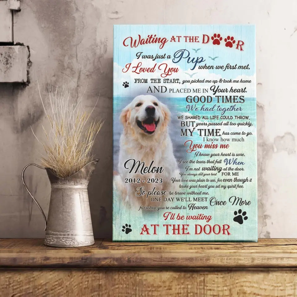 Dog Memorial Personalized Canvas Prints - Custom Photo & Text - 5 Sizes - Custom Sayings For Loss Of Dog, Waiting At The Door - Dem Canvas