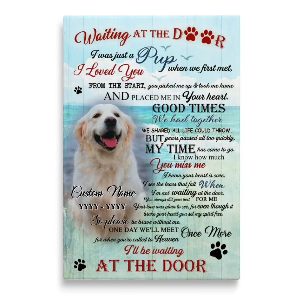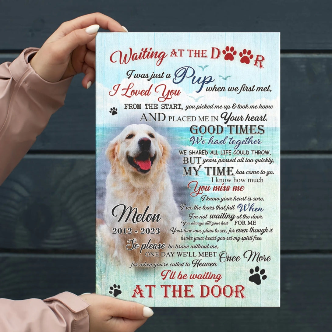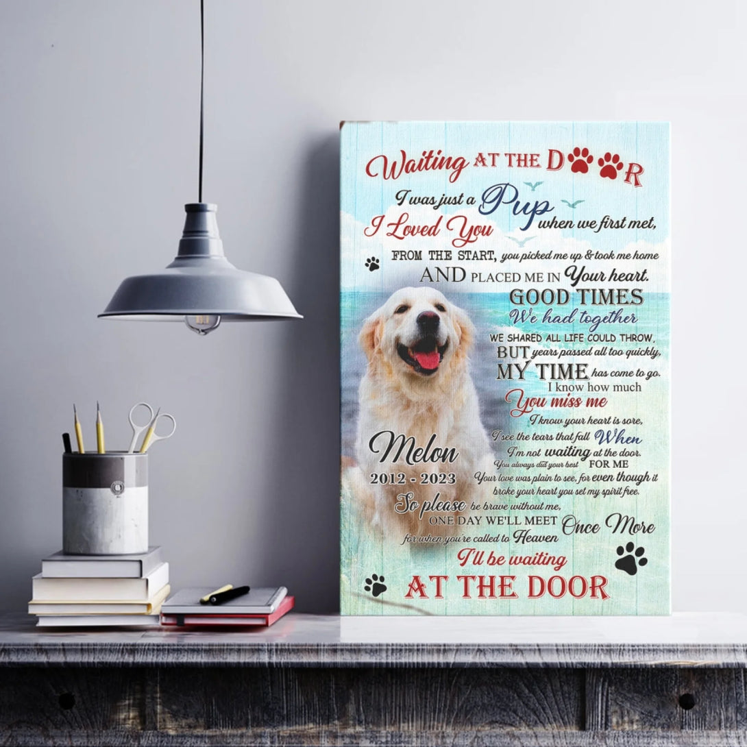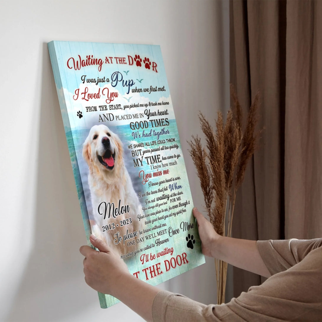Dog Memorial Personalized Canvas Prints - Custom Photo & Text - 5 Sizes - Custom Sayings For Loss Of Dog, Waiting At The Door - Dem Canvas