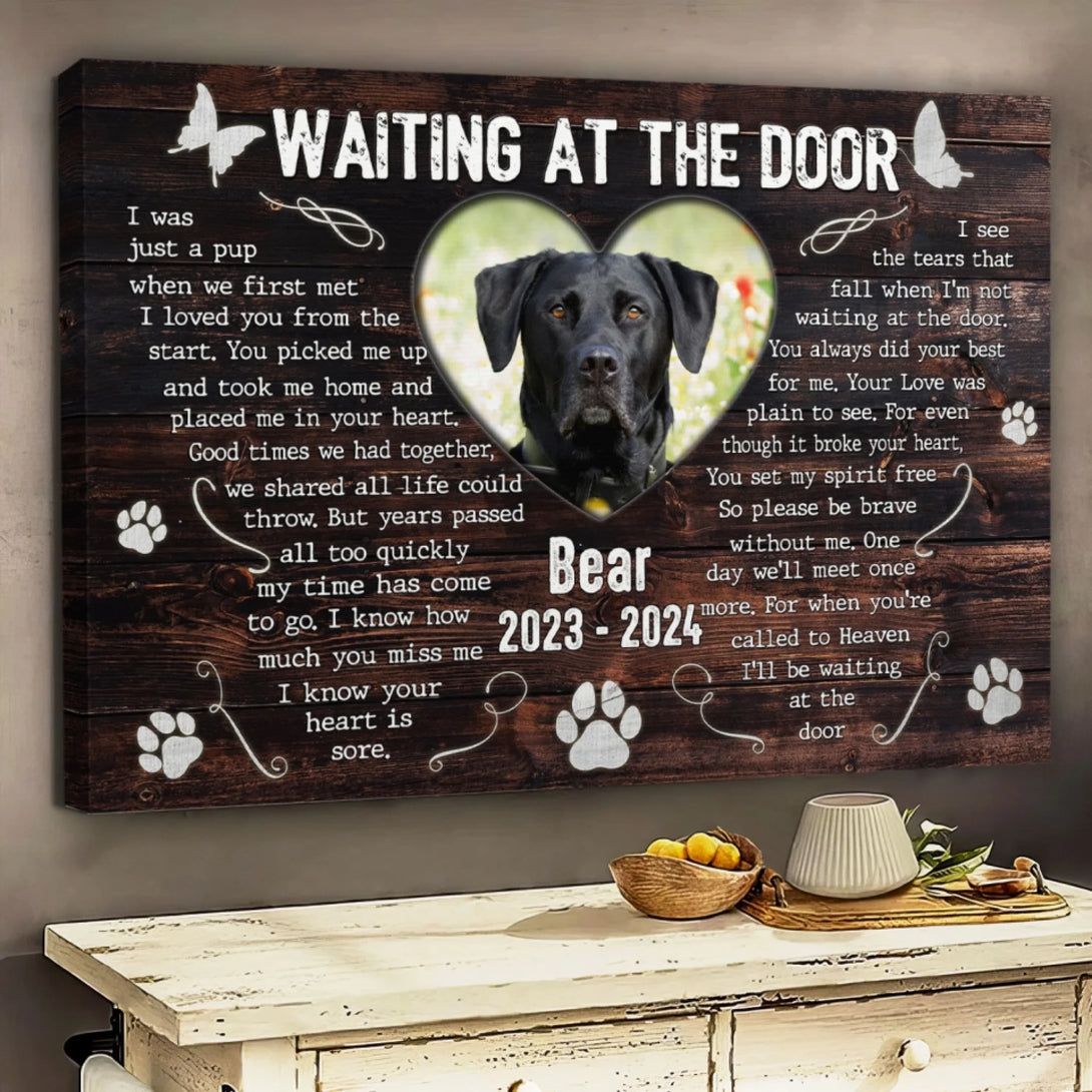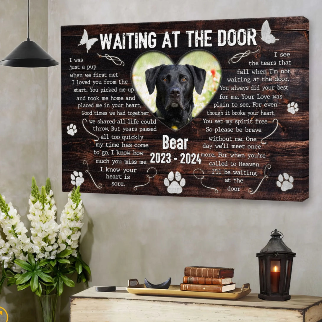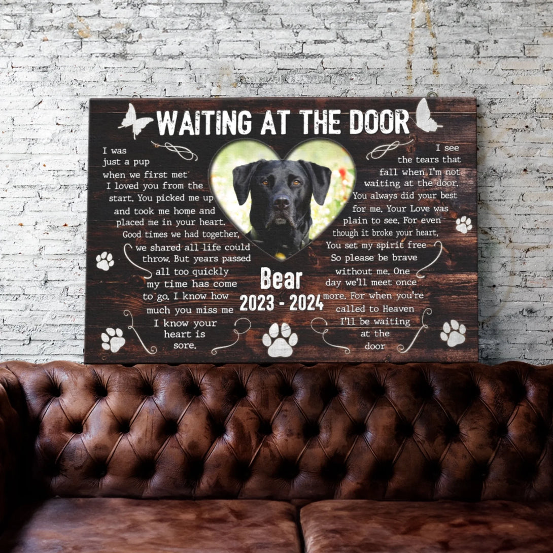 Dog Memorial Personalized Canvas Prints - Custom Photo & Text - 5 Sizes - Dog Memorial Canvas A Heartfelt Memorial, Waiting At The Door - Dem Canvas