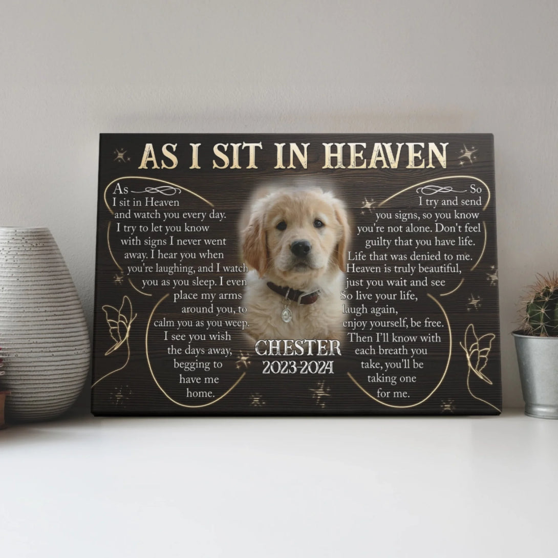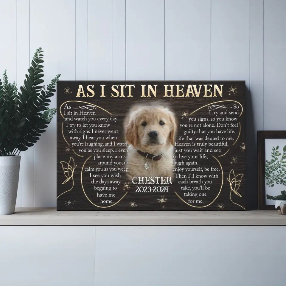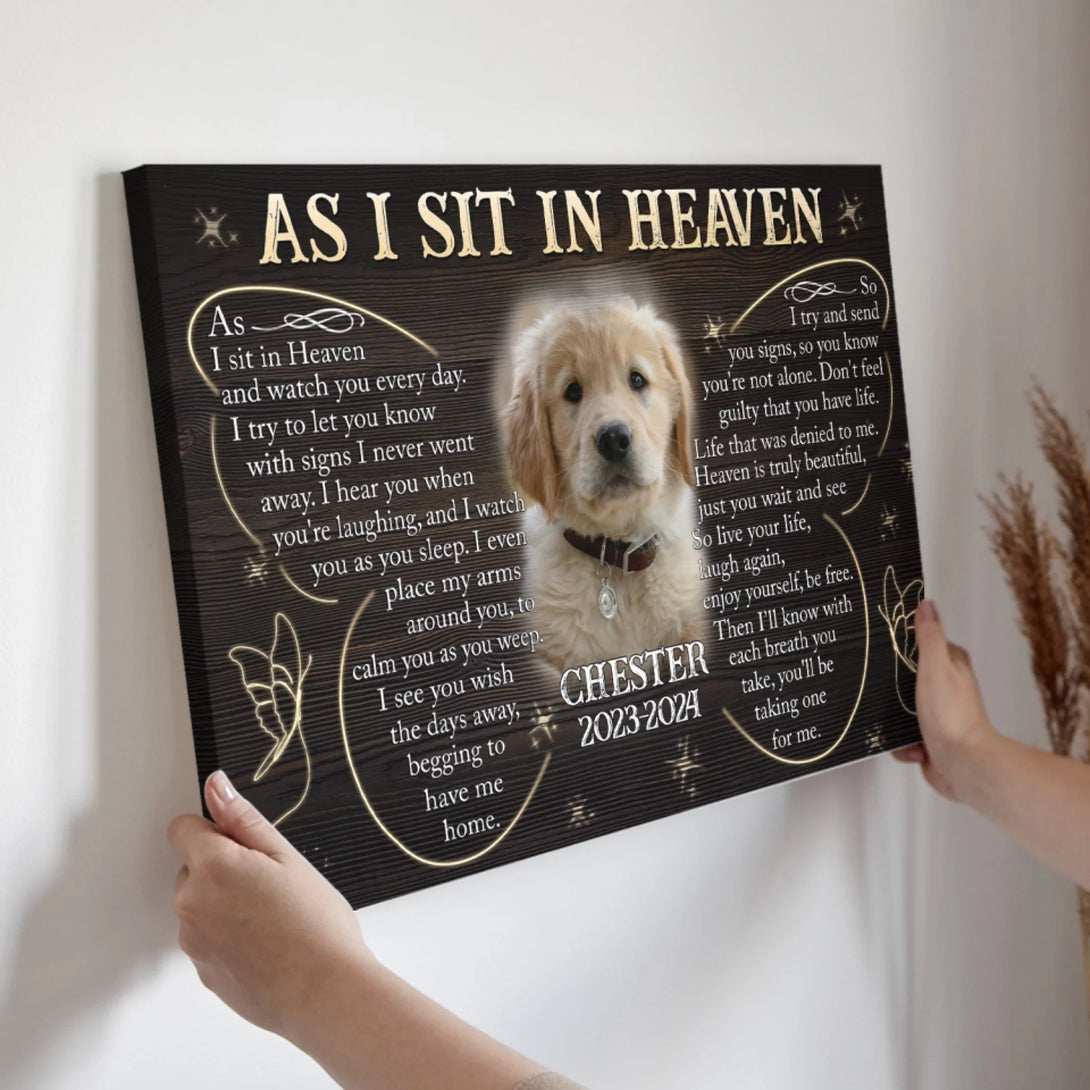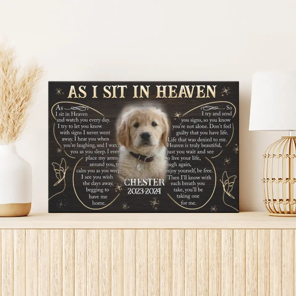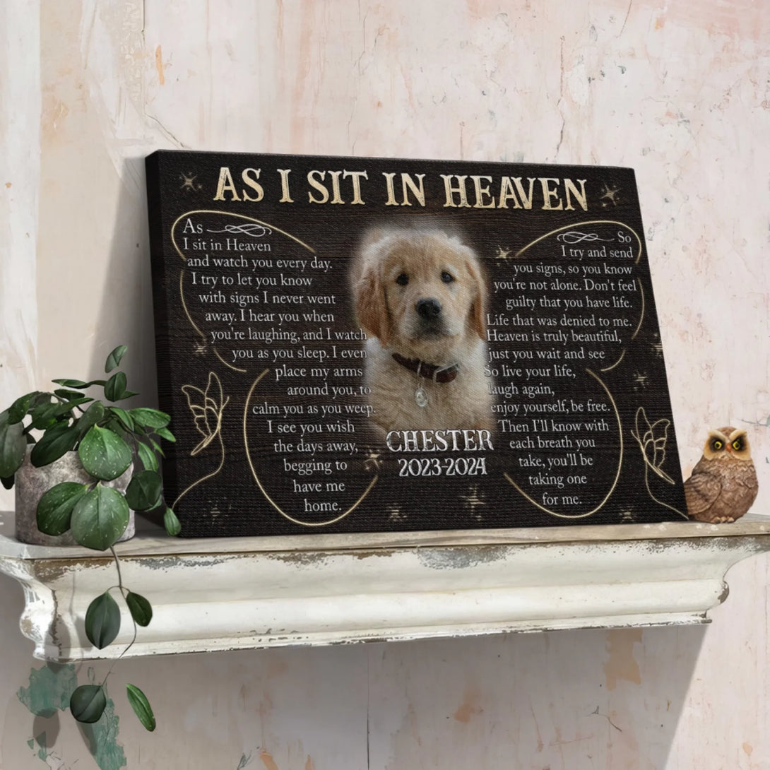 Dog Memorial Personalized Canvas Prints - Custom Photo & Text - 5 Sizes - Dog Memorial Canvas Your Beloved Companion, As I Sit In Heaven - Dem Canvas