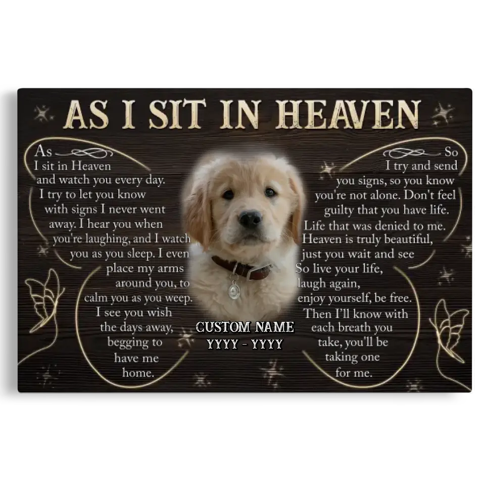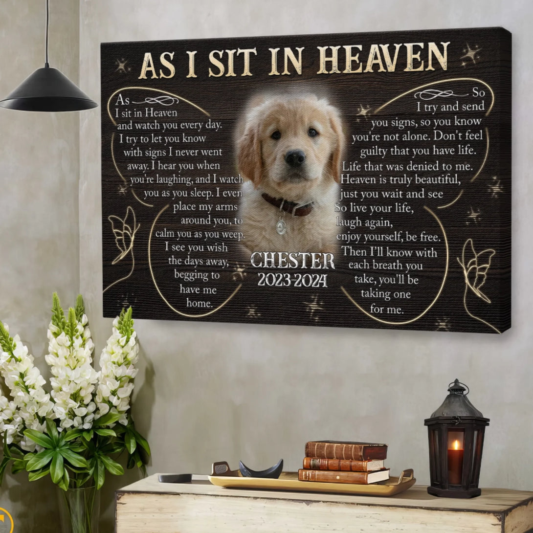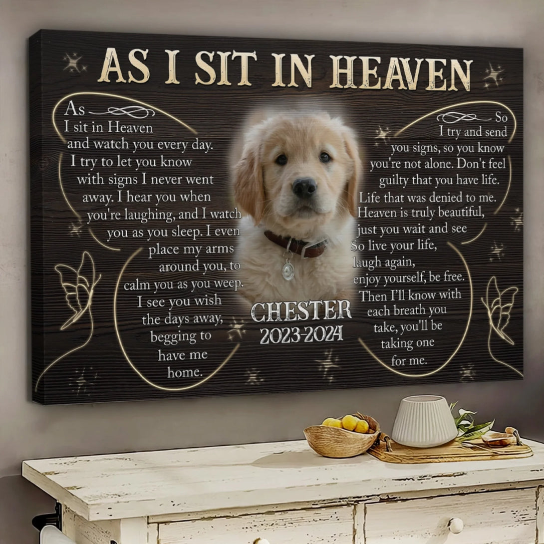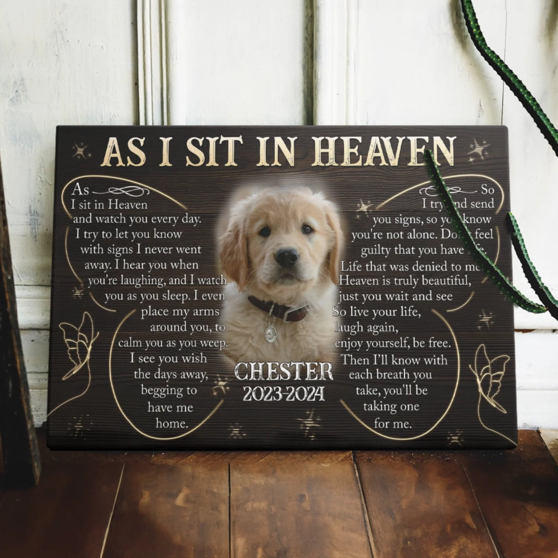 Dog Memorial Personalized Canvas Prints - Custom Photo & Text - 5 Sizes - Dog Memorial Canvas Your Beloved Companion, As I Sit In Heaven - Dem Canvas