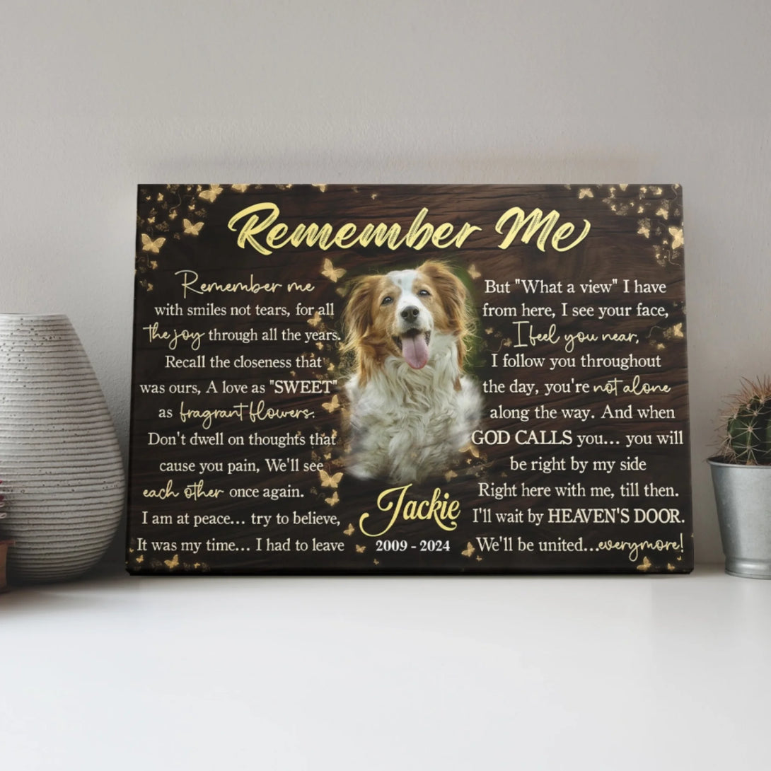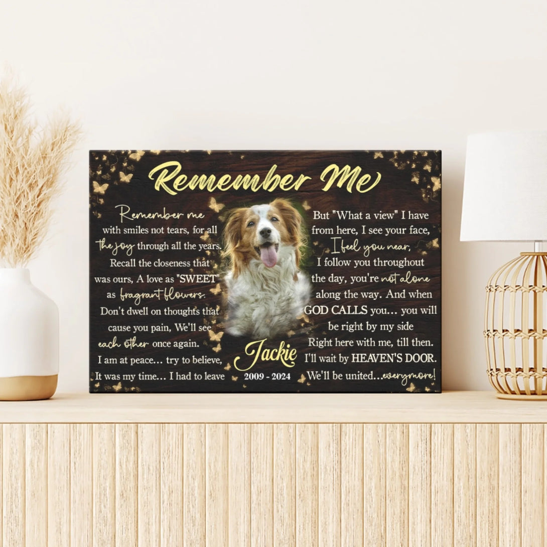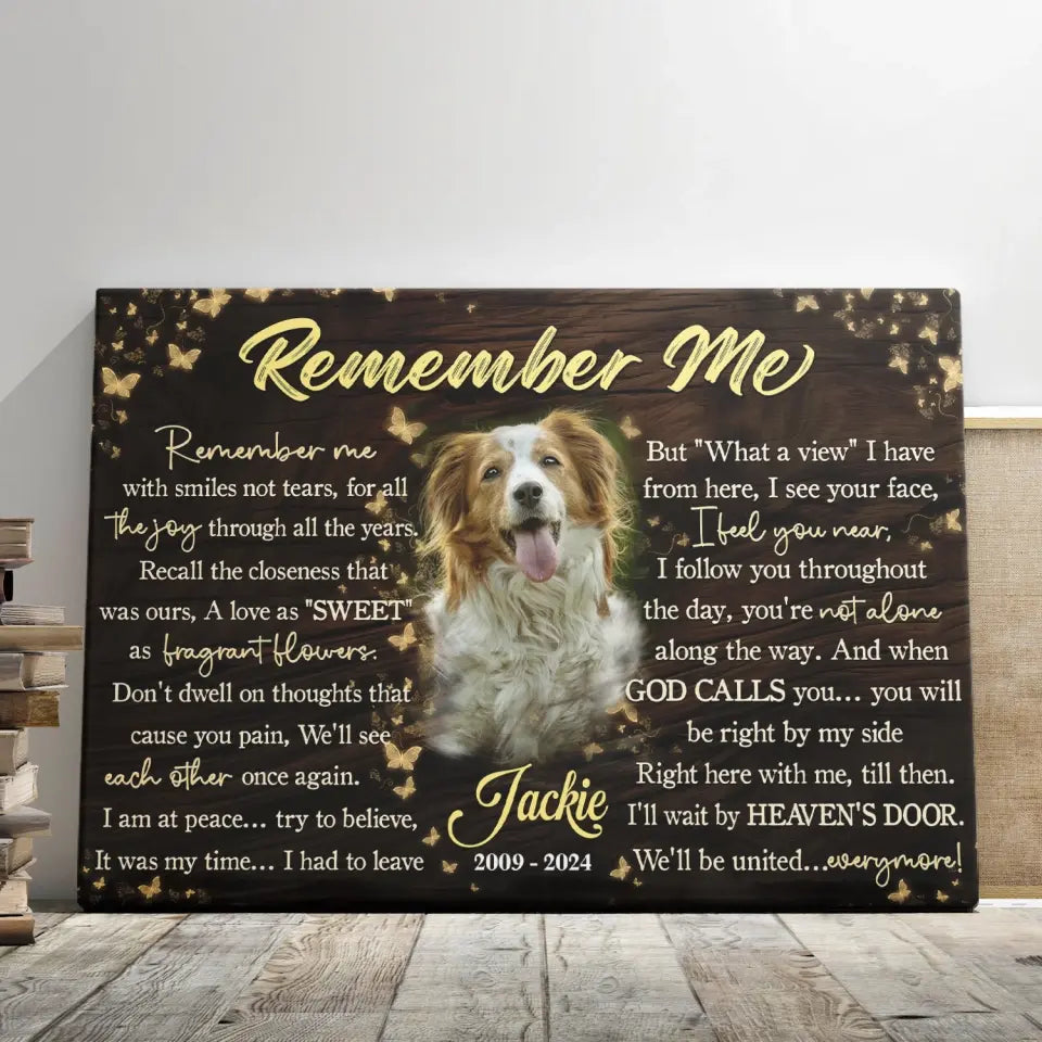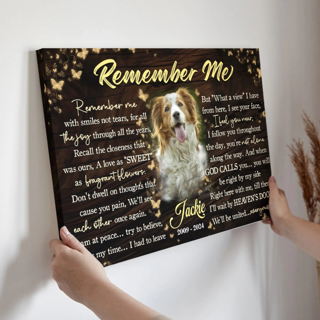 Dog Memorial Personalized Canvas Prints - Custom Photo & Text - 5 Sizes - Pet Memorial Canvas, Remember Me Poem Dog Memorial - Dem Canvas