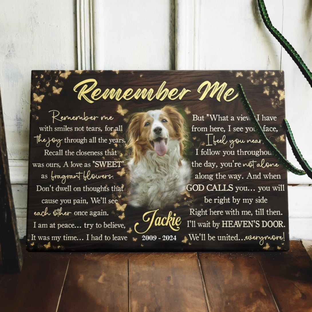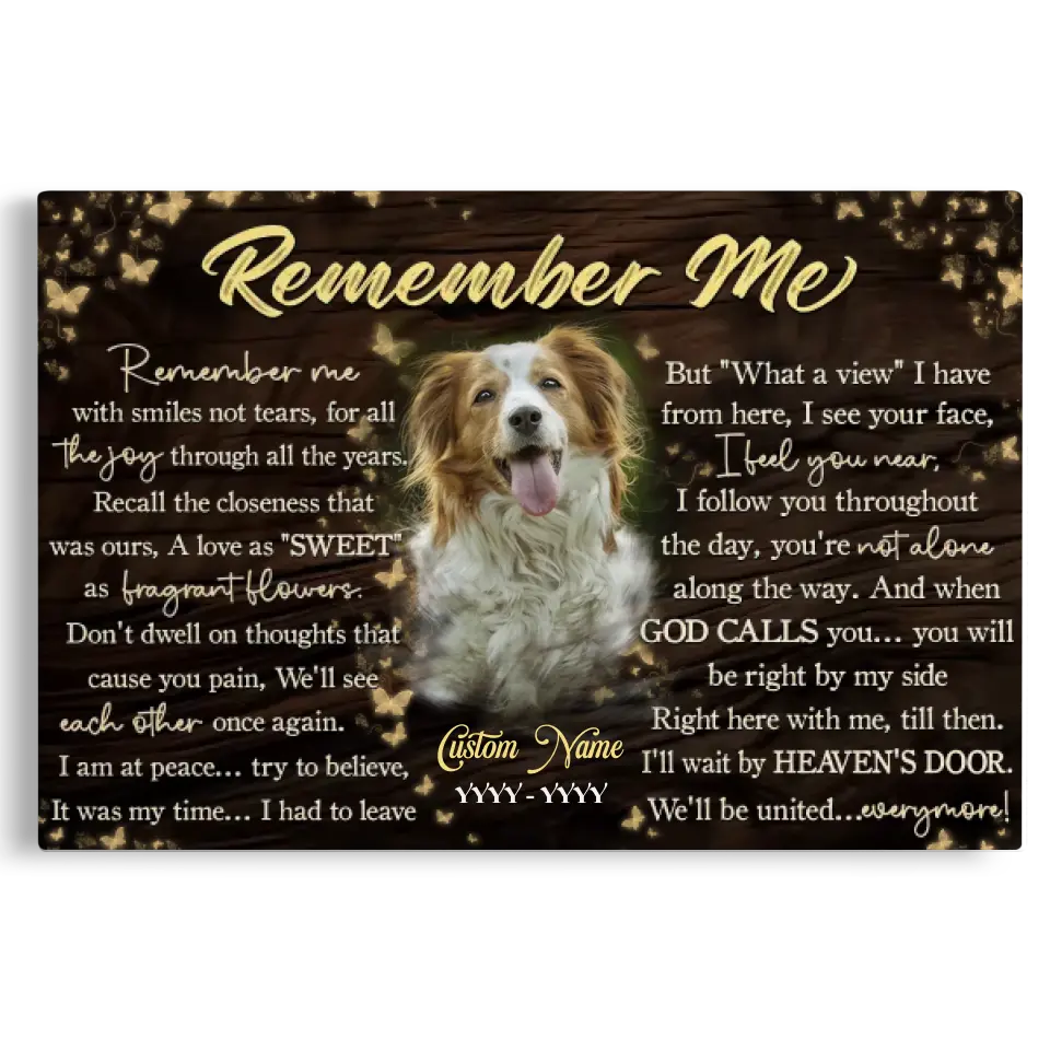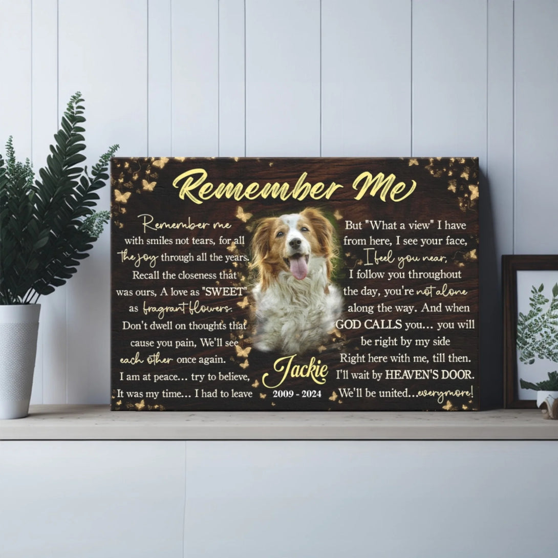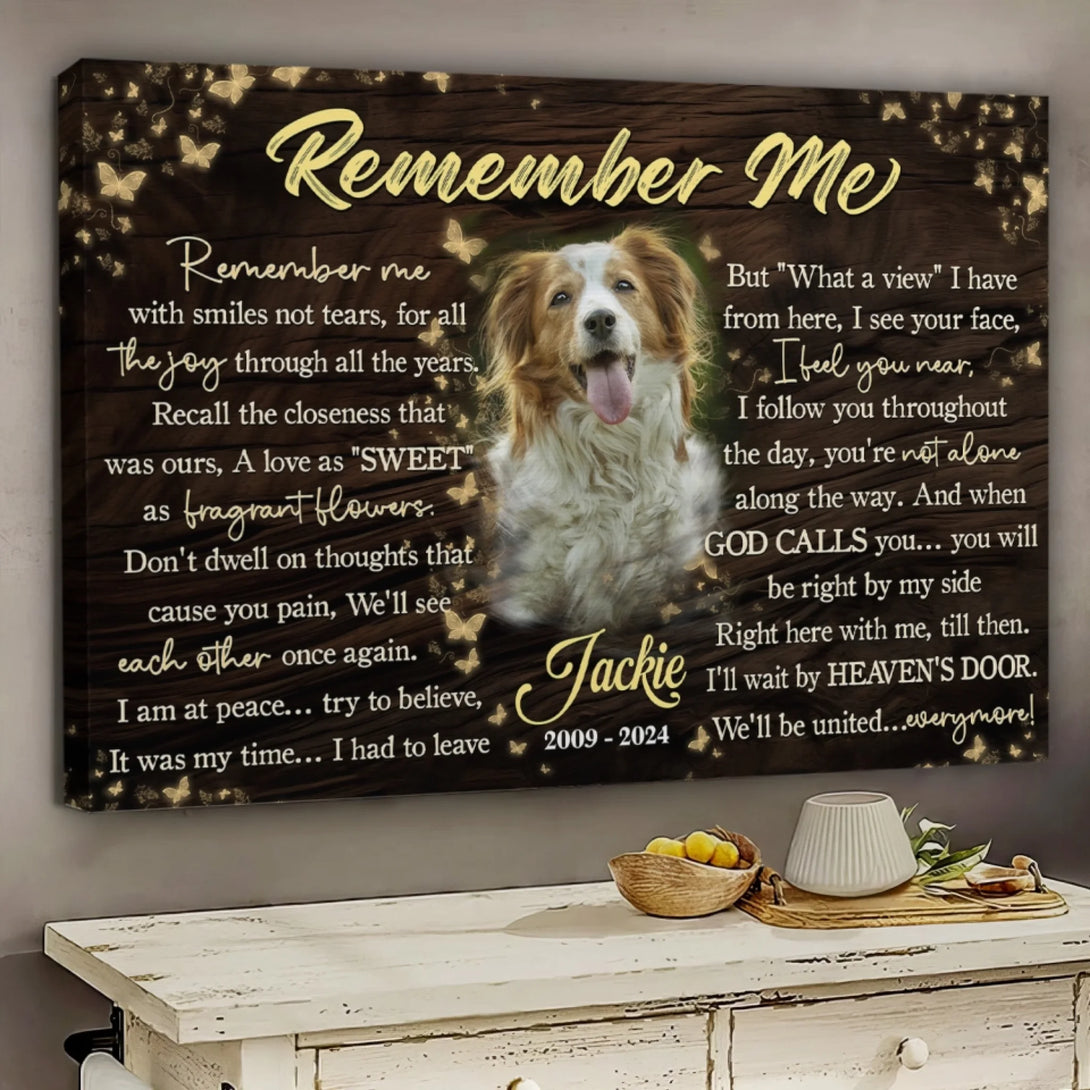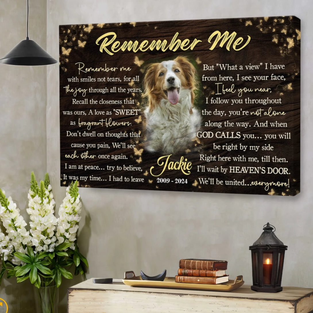 Dog Memorial Personalized Canvas Prints - Custom Photo & Text - 5 Sizes - Pet Memorial Canvas, Remember Me Poem Dog Memorial - Dem Canvas