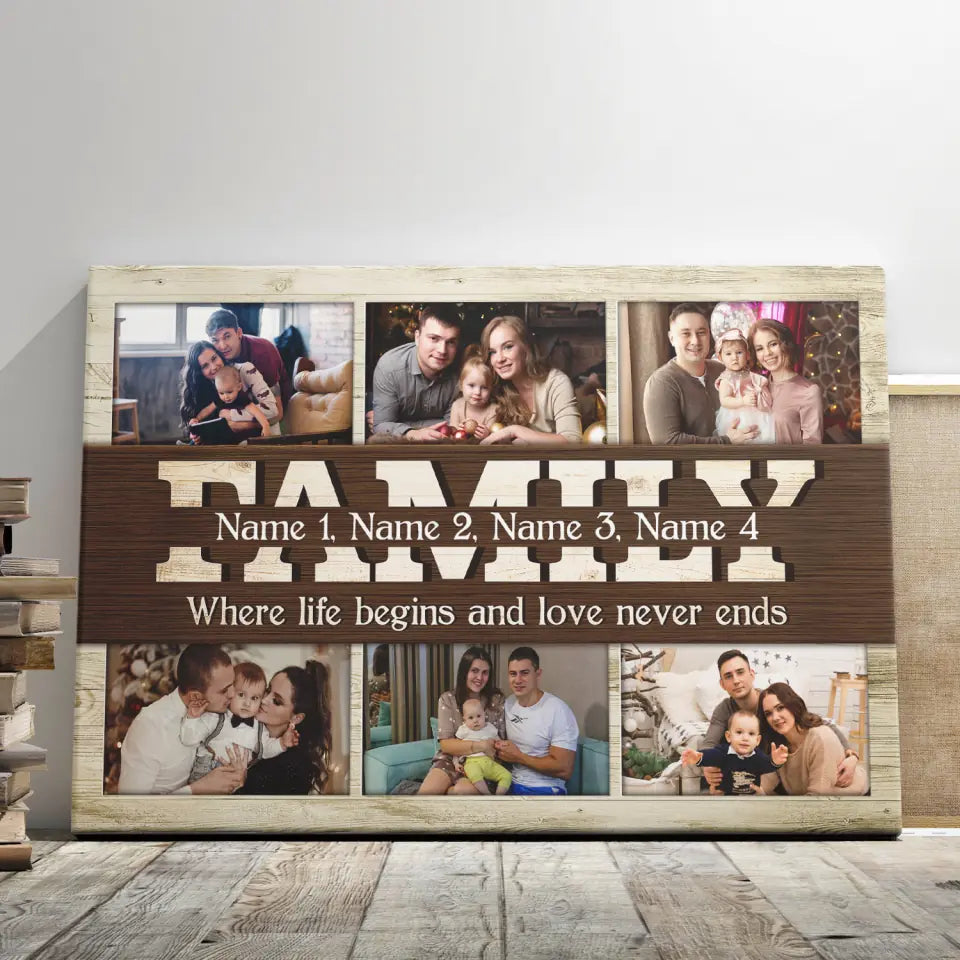 Family Canvas - Personalized Canvas Prints - Gift For Mom and Dad, Photo Gift for Family, Family Where Life Begins And Love Never End