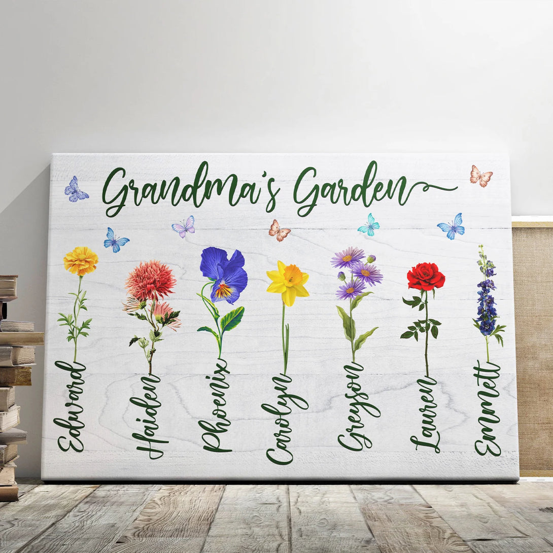 Family Personalized Canvas Prints - Custom Text - 5 Sizes - Gift For Mother, Birth Flowers, Family Name - Dem Canvas