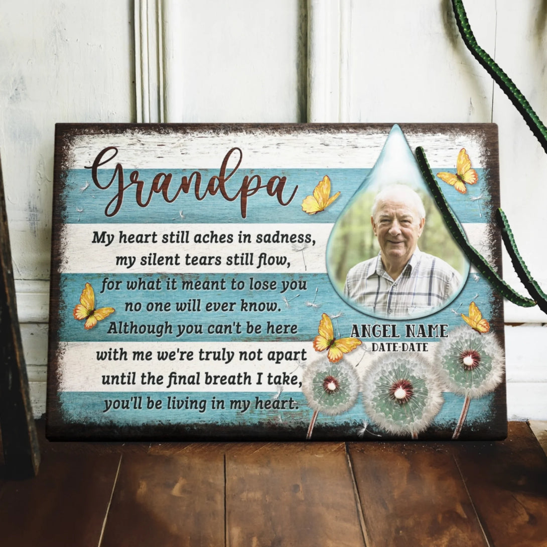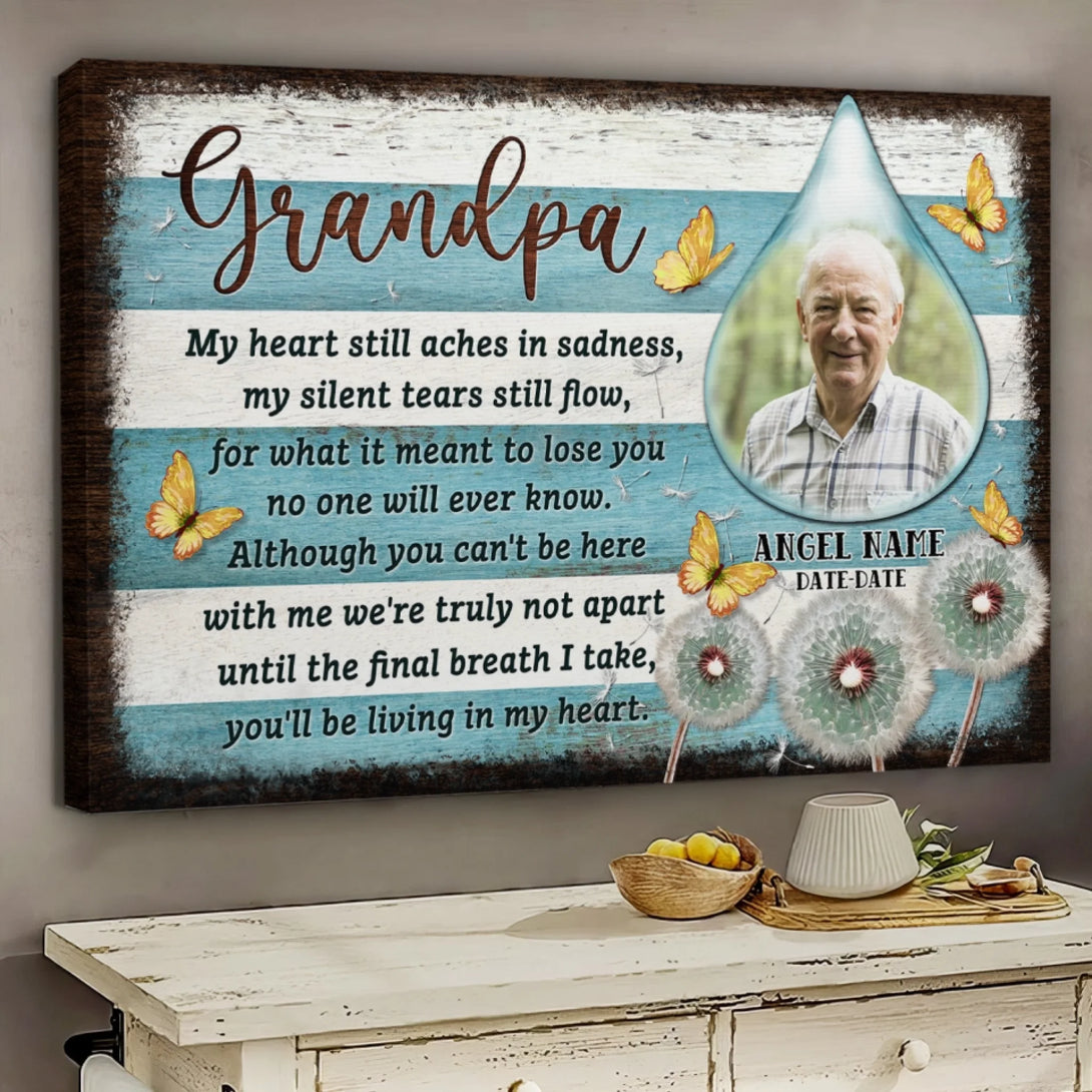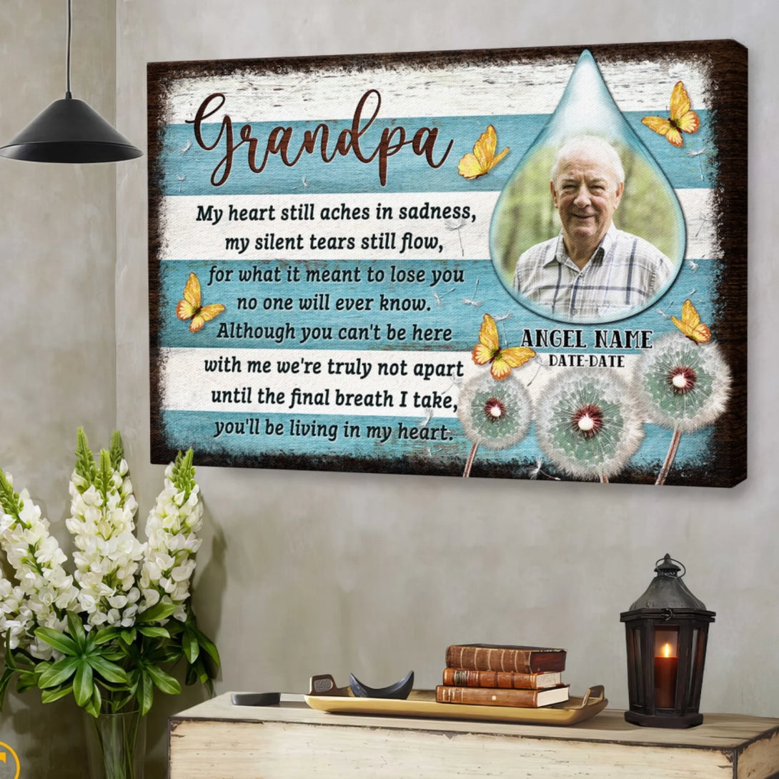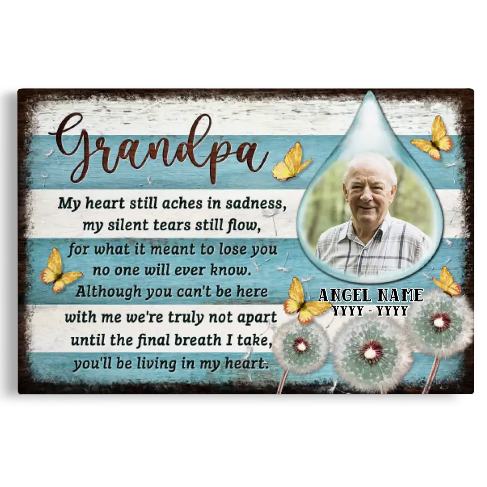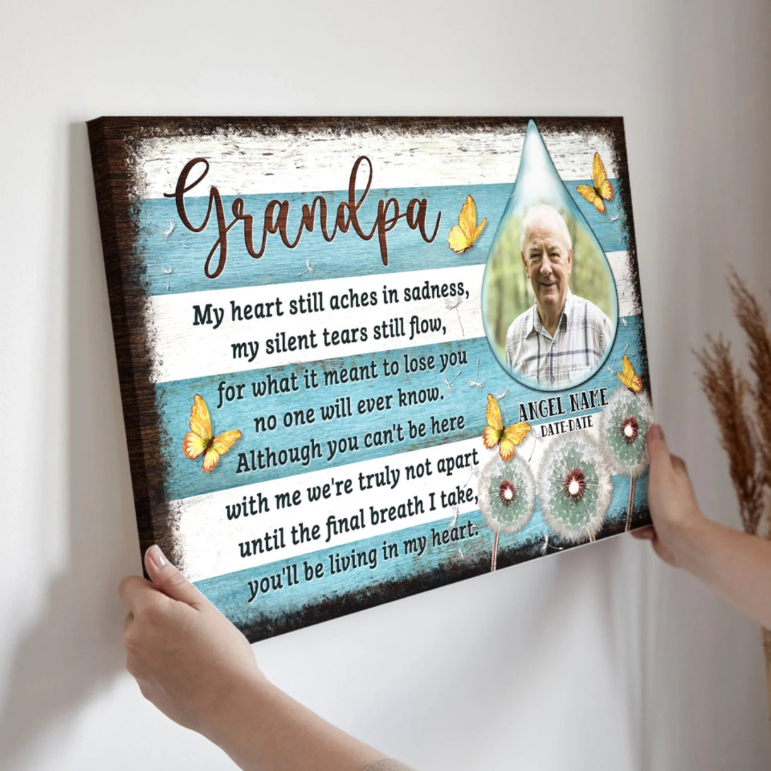 Grandpa Memorial Personalized Canvas Prints - Custom Clipart, Photo & Text - 5 Sizes - Memorial Canvas For Grandpa, Forever In My Heart - Dem Canvas