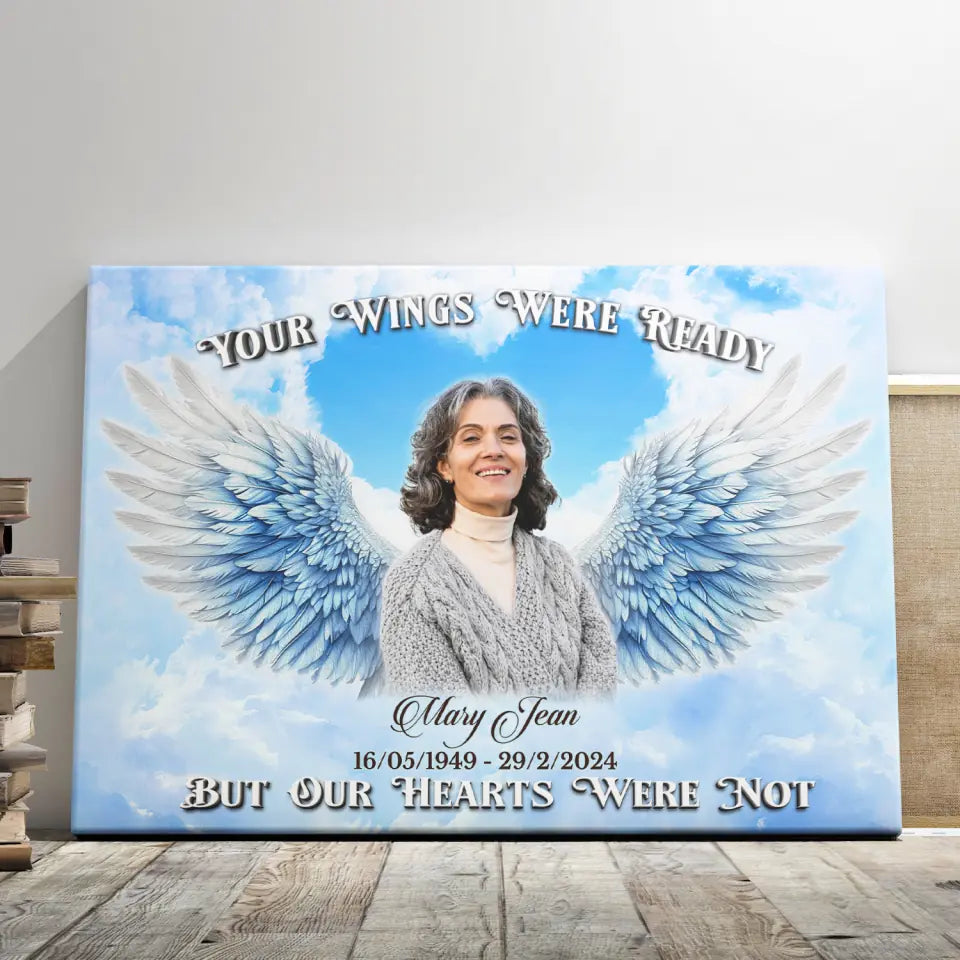 Memorial Canvas - Personalized Canvas Prints - Angel Wings Sympathy Gift for Loss Of Mom, Your Wings Were Ready But Out Hearts Were Not