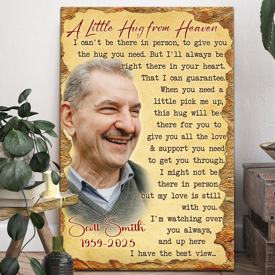 Memorial Personalized Canvas Prints - Custom Photo & Text - 5 Sizes - Gift For Loved Ones, Sympathy Gift, A Little Hug From Heaven - Dem Canvas