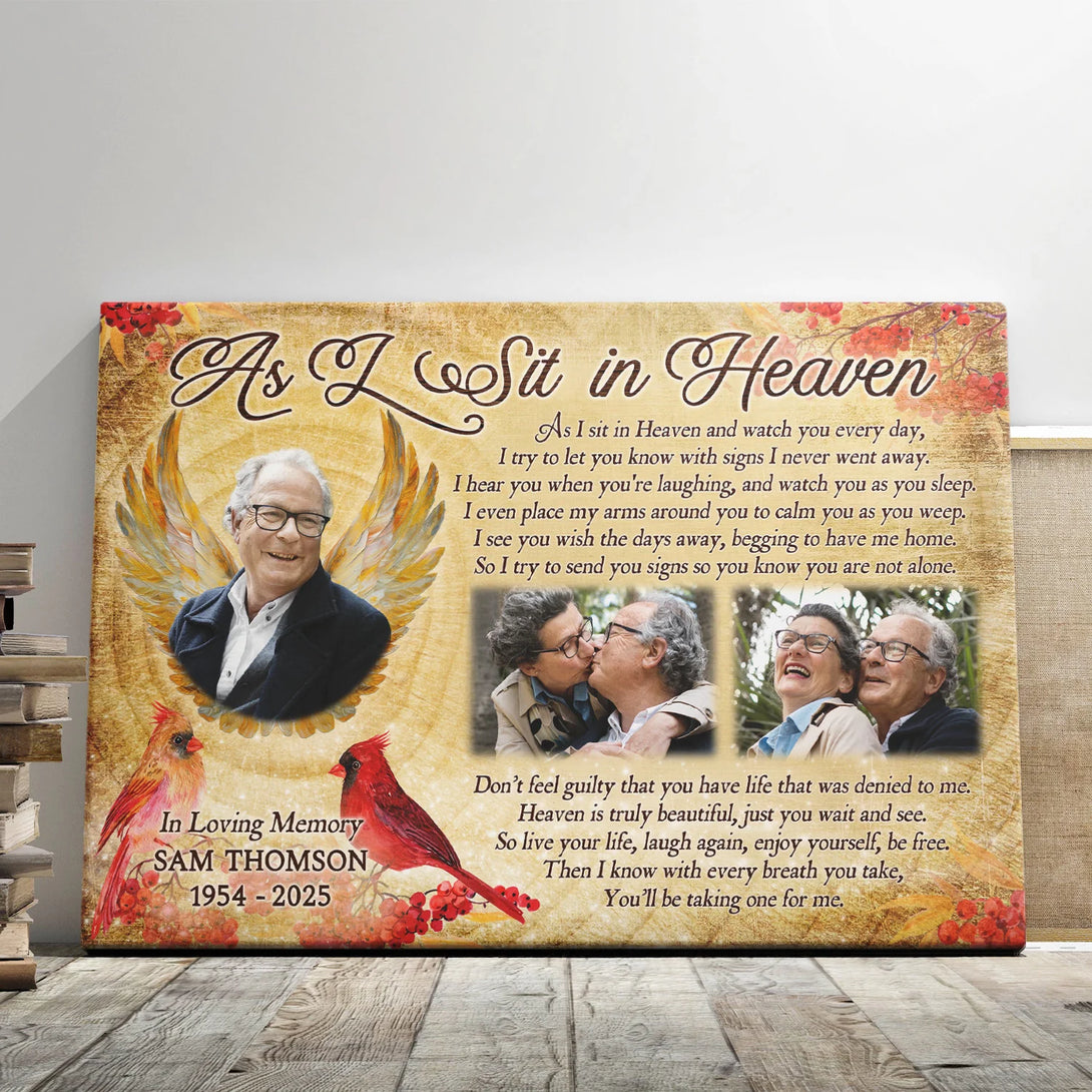 Memorial Personalized Canvas Prints - Custom Photo & Text - 5 Sizes - Sympathy Gift, Cardinal Memorial, Angel Wings, As I Sit In Heaven - Dem Canvas