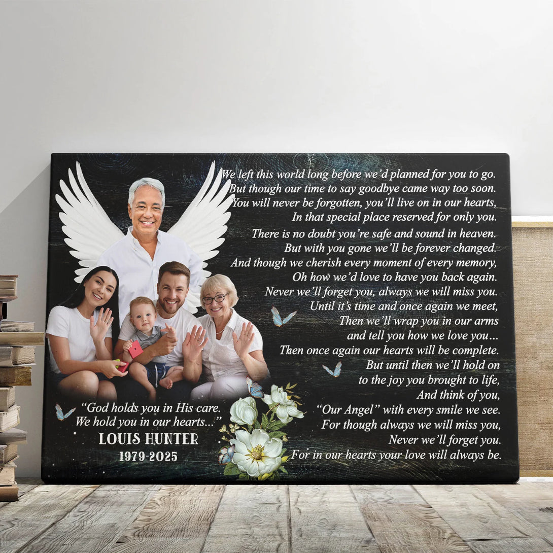 Memorial Personalized Canvas Prints - Custom Photo & Text - 5 Sizes -Sympathy Gifts, God Holds You In His Care, Family Photo Merge - Dem Canvas