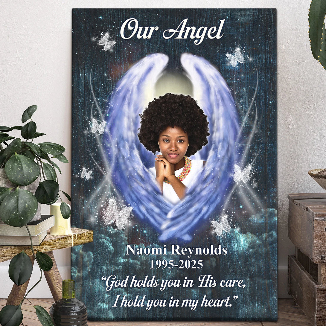 Memorial Personalized Canvas Prints - Custom Photo & Text - 5 Sizes - Sympathy Gifts, Our Angel, God Holds You In His Care - Dem Canvas