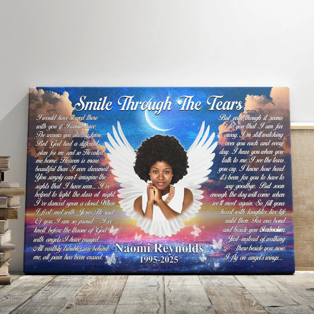 Memorial Personalized Canvas Prints - Custom Photo & Text - 5 Sizes - Sympathy Gifts, Smile Through The Tears, I Fly On Angel's Wings - Dem Canvas
