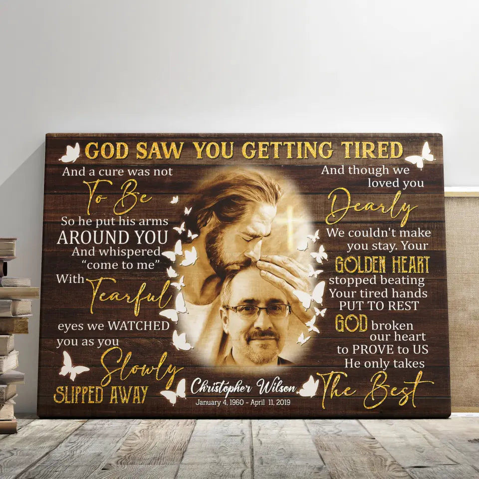 Personalized Canvas Prints Custom Name, Date, Upload Photo, Jesus Memorial Gifts, Remembrance Gifts, Loss Dad God Saw You Are Getting Tired Dem Canvas