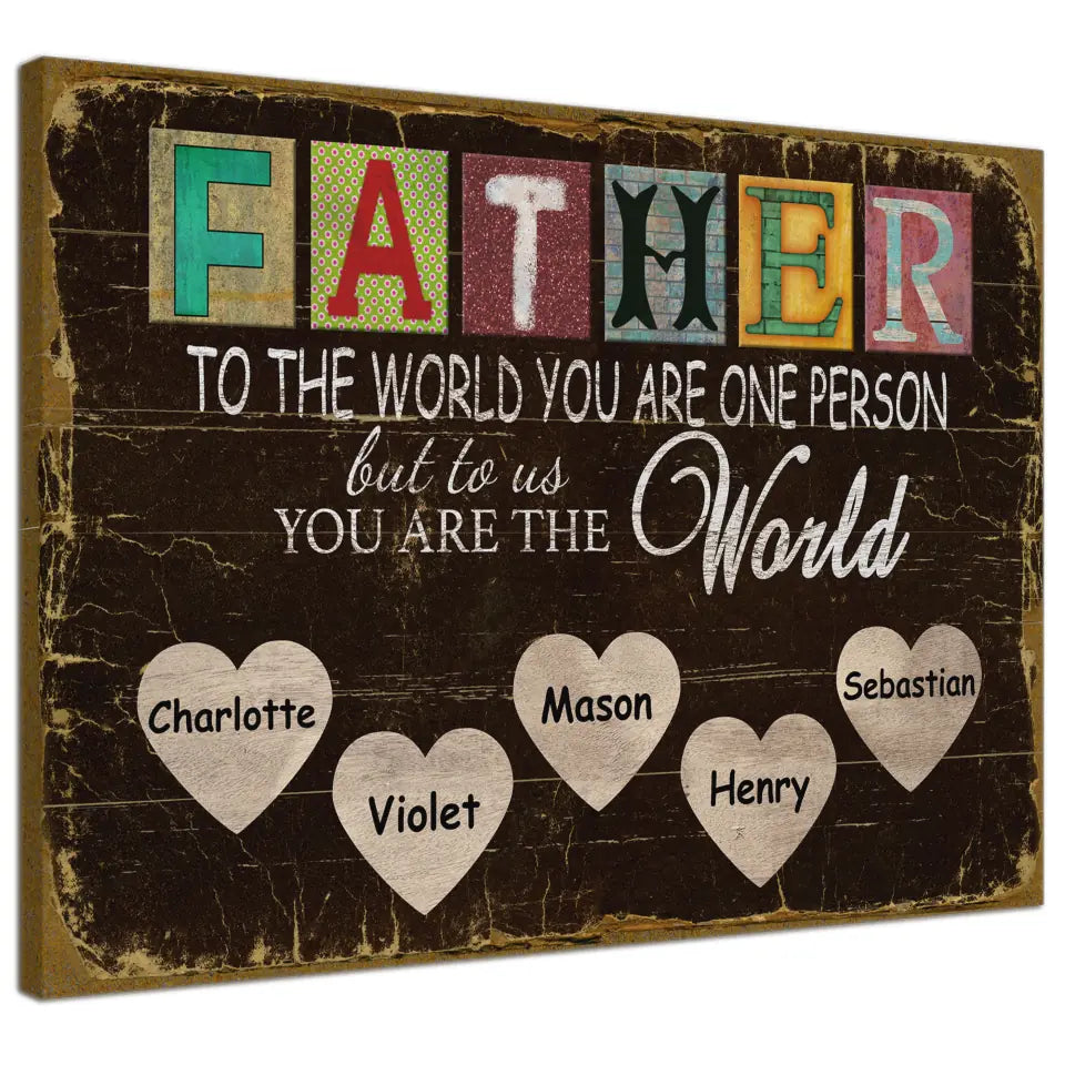 Personalized Canvas Prints, Custom Name, Gift For Father, Gift For Family, Love Dad You Are The World Dem Canvas
