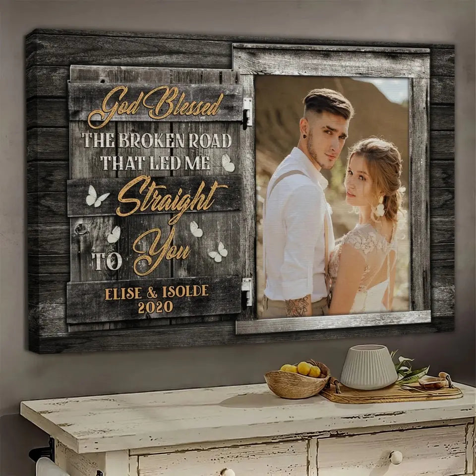 Personalized Canvas Prints Custom Photo, Anniversary Gifts, Couple Gifts, God Blessed The Broken Road That Led Me Straight To You Dem Canvas