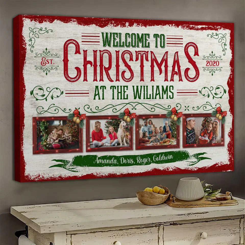 Personalized Canvas Prints, Custom Photo, Christmas Gifts For Family, Christmas Decor At Home, Welcome To Christmas Family Dem Canvas