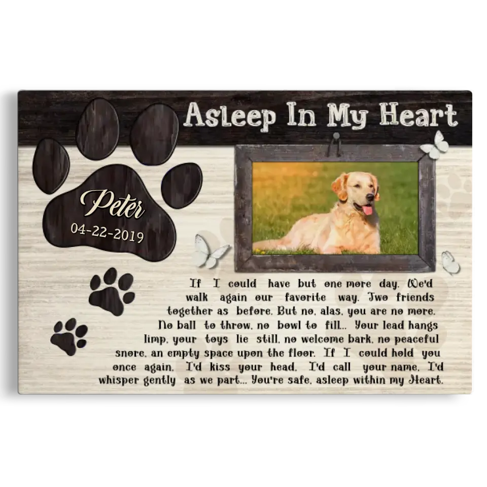 Personalized Canvas Prints, Custom Photo, Dog Remembrance, Gift Sympathy, Loss Of Dog, Asleep In My Heart Dem Canvas