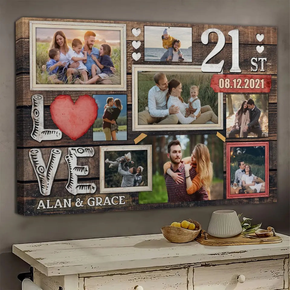 Personalized Canvas Prints, Custom Photo, Gifts For Couples, 21st Anniversary Gifts For Husband And Wife, Love 21st Anniversary Dem Canvas