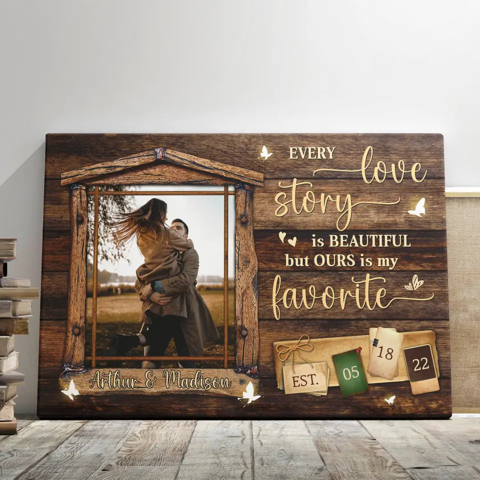 Personalized Canvas Prints, Custom Photo, Gifts For Couples, Through Wooden Window Every Love Story Is Beautiful Dem Canvas