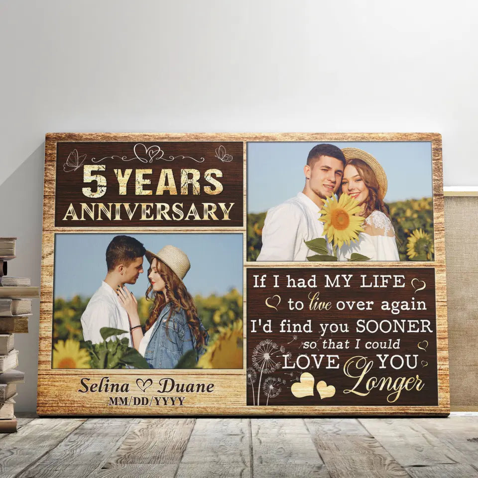 Personalized Canvas Prints, Custom Photo, Gifts For Couples, Wedding Date 5th Anniversary Gifts, Love You Longer Dem Canvas