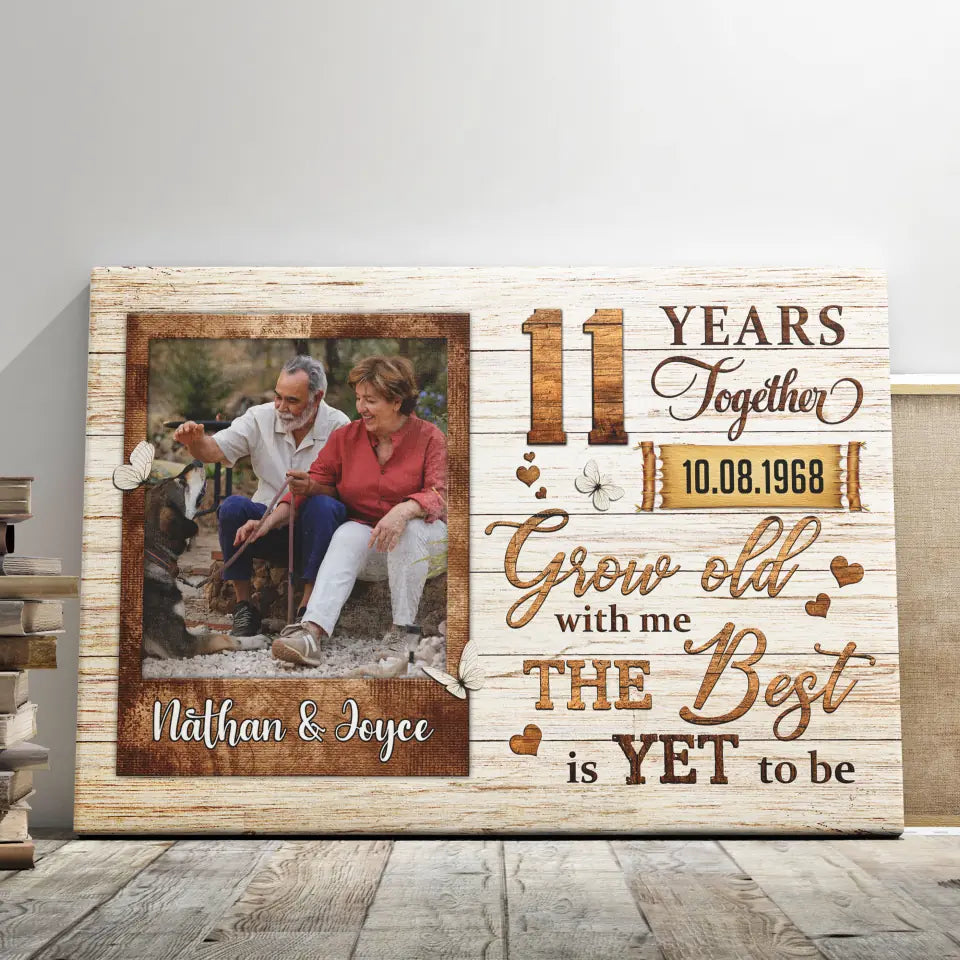 Personalized Canvas Prints, Custom Photo, Gifts For Couples, Wedding Gifts, 11th Anniversary Gifts, Grow Old Dem Canvas