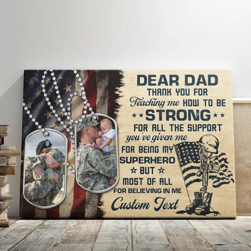 Personalized Canvas Prints, Custom Photo, Gifts for Veterans, Father's Day, Dear Veteran Dad Gift For Dad, In Army Military From Son Dem Canvas
