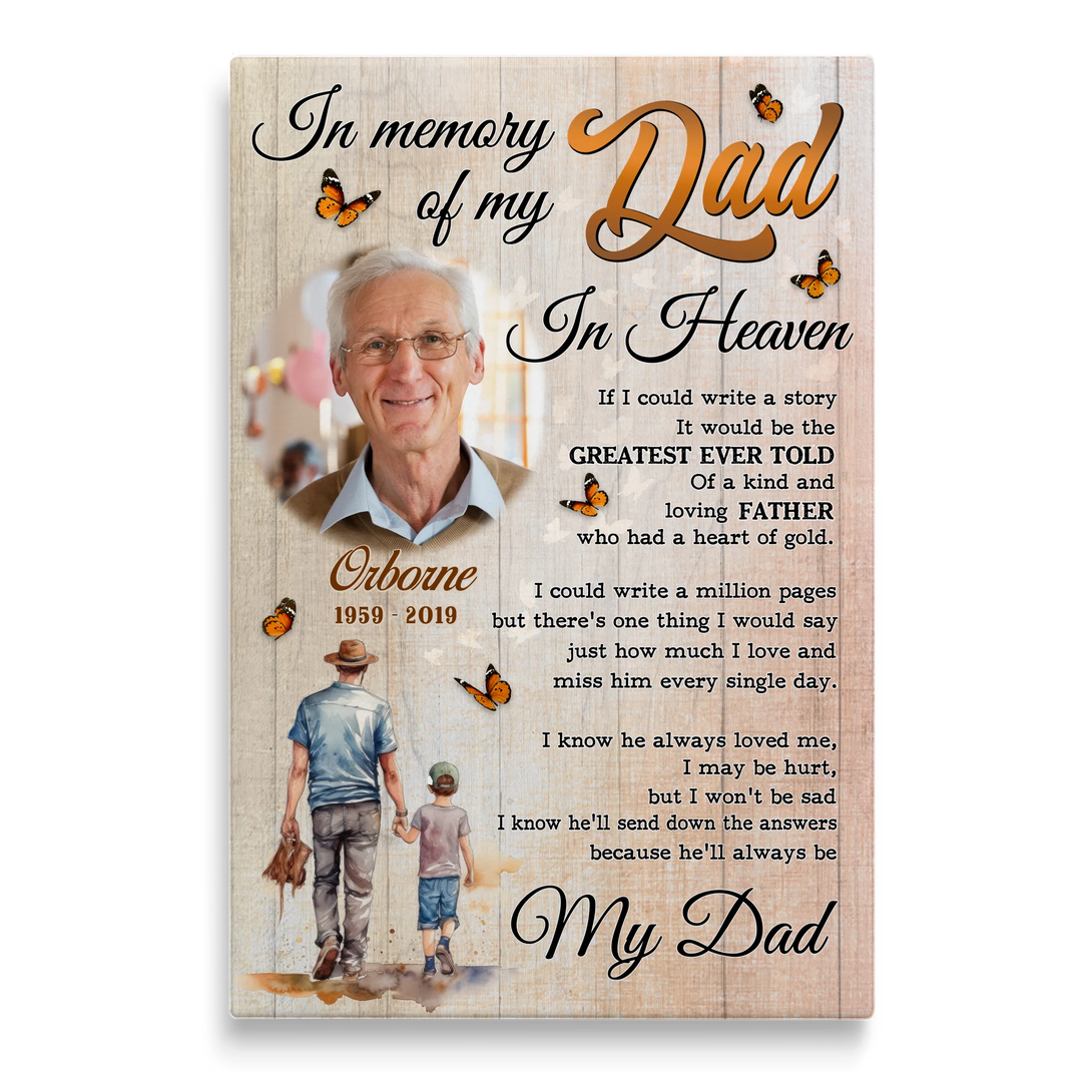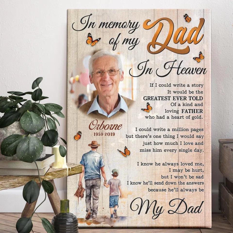 Personalized Canvas Prints, Custom Photo, Memorial Gift, Photo In Memory Of My Dad In Heaven Framed, Memorial Dad Wall Art Dem Canvas